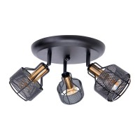 Stijlvolle plafond- en wandlamp uit de Foro-collectie in zwart met gouden accenten. Gemaakt van metaal in retro stijl. Voorzien van 3 E14-fittingen. Perfect voor sfeervolle en gerichte verlichting in de woonkamer, eetkamer of keuken.