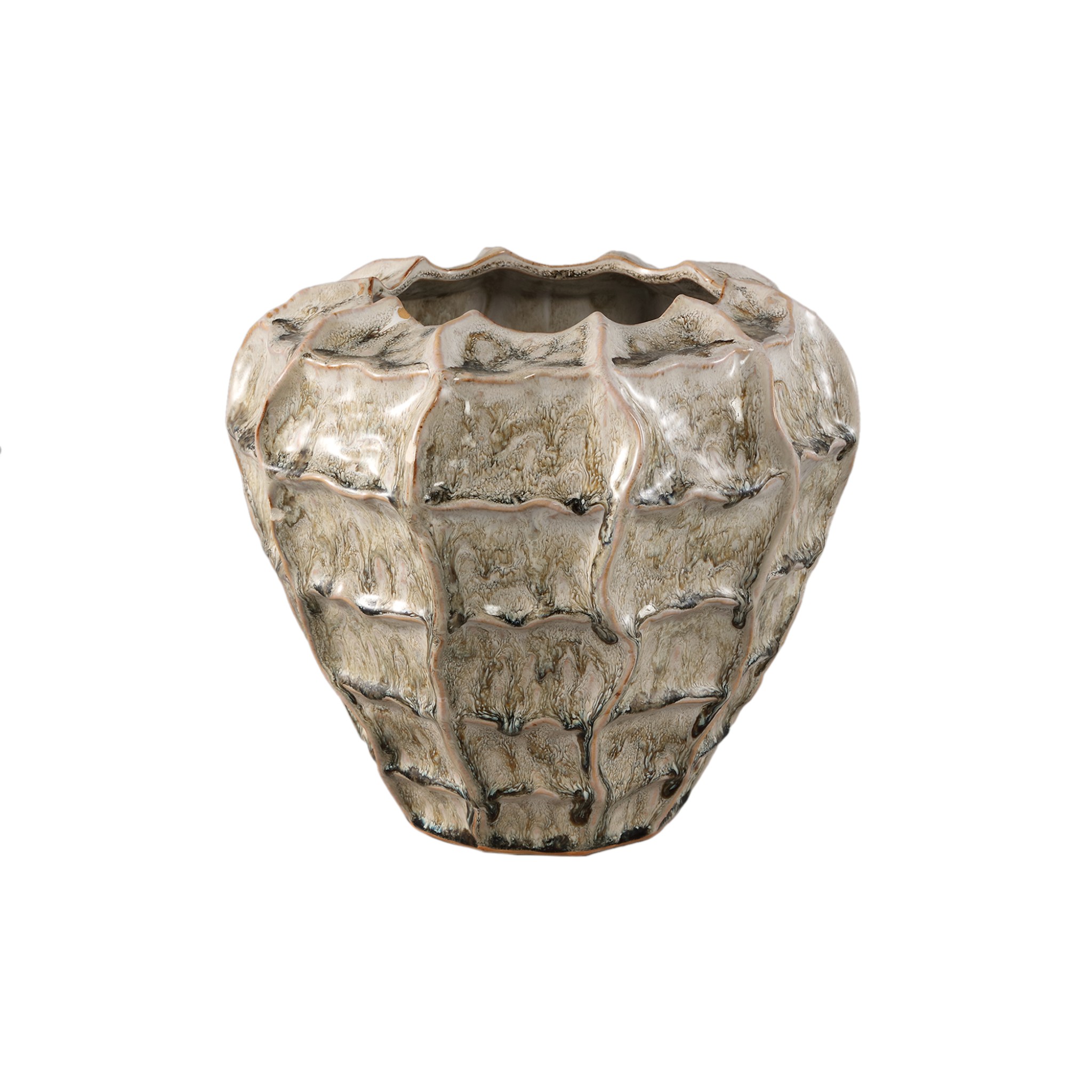 Cedric Crème Keramische Ronde Pot | L | 26×23 cm | Golvende Vorm met Kleurenmix