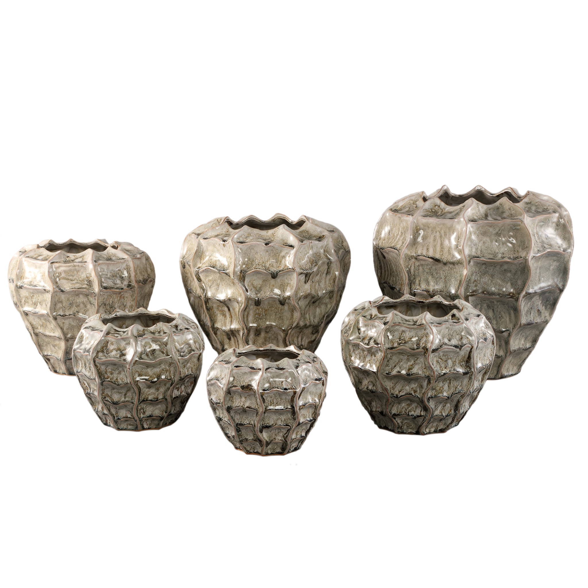 Cedric Crème Keramische Ronde Pot | M – 23×19 cm | Golvende Vorm met Kleurenmix