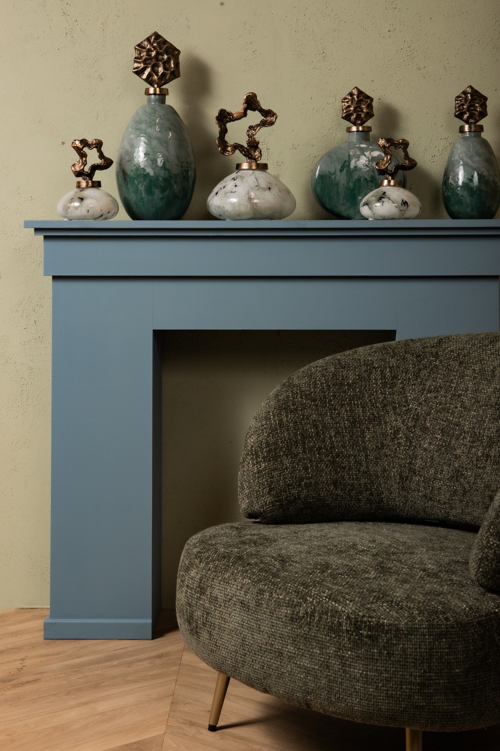 De Cherisee Green Glass Statue Brass Lid Low is een verfijnd glazen decoratiebeeld in diepe groene tint, afgewerkt met een messing deksel. Het compacte, lage ontwerp maakt dit beeld veelzijdig inzetbaar als stijlvol accent op tafels, planken of dressoirs, en voegt een luxueuze touch toe aan moderne en klassieke interieurs.