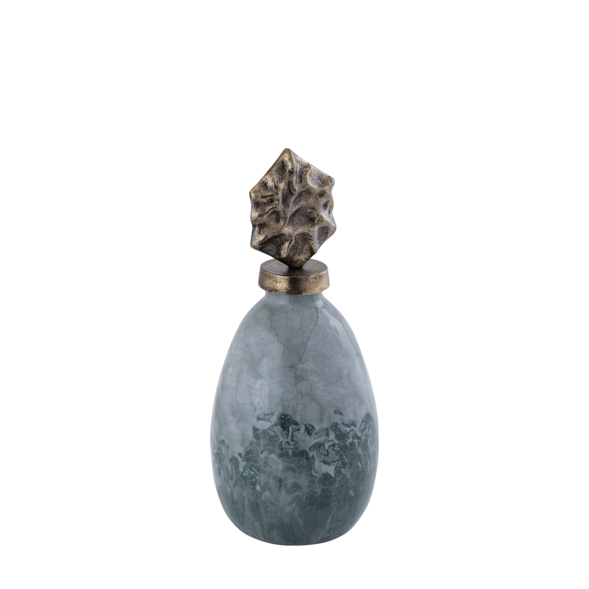 Met een formaat van 16W x 36H x 16L cm en een gewicht van 1 kg, combineert dit beeld elegantie met praktische plaatsbaarheid. Het contrast tussen het groene glas en het glanzende messing deksel geeft een verfijnde, moderne uitstraling die opvalt in elke ruimte.