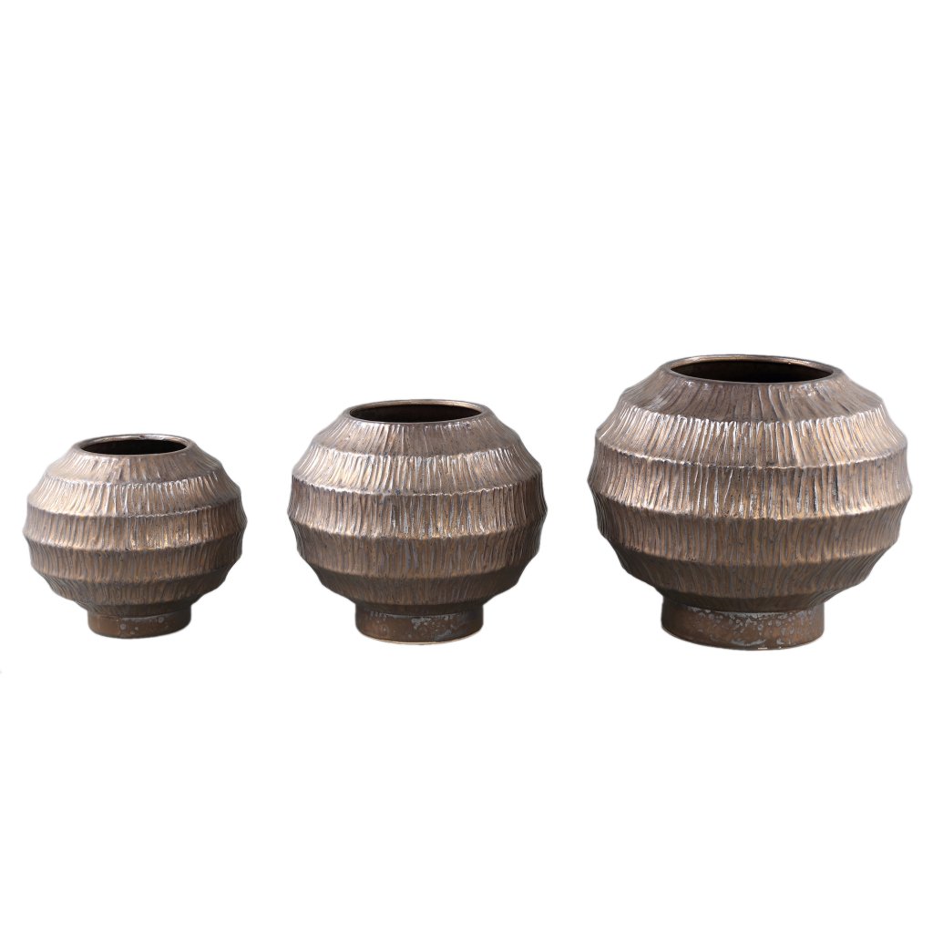 Cherith Bronze Round Ceramic Pot Ribbed – M