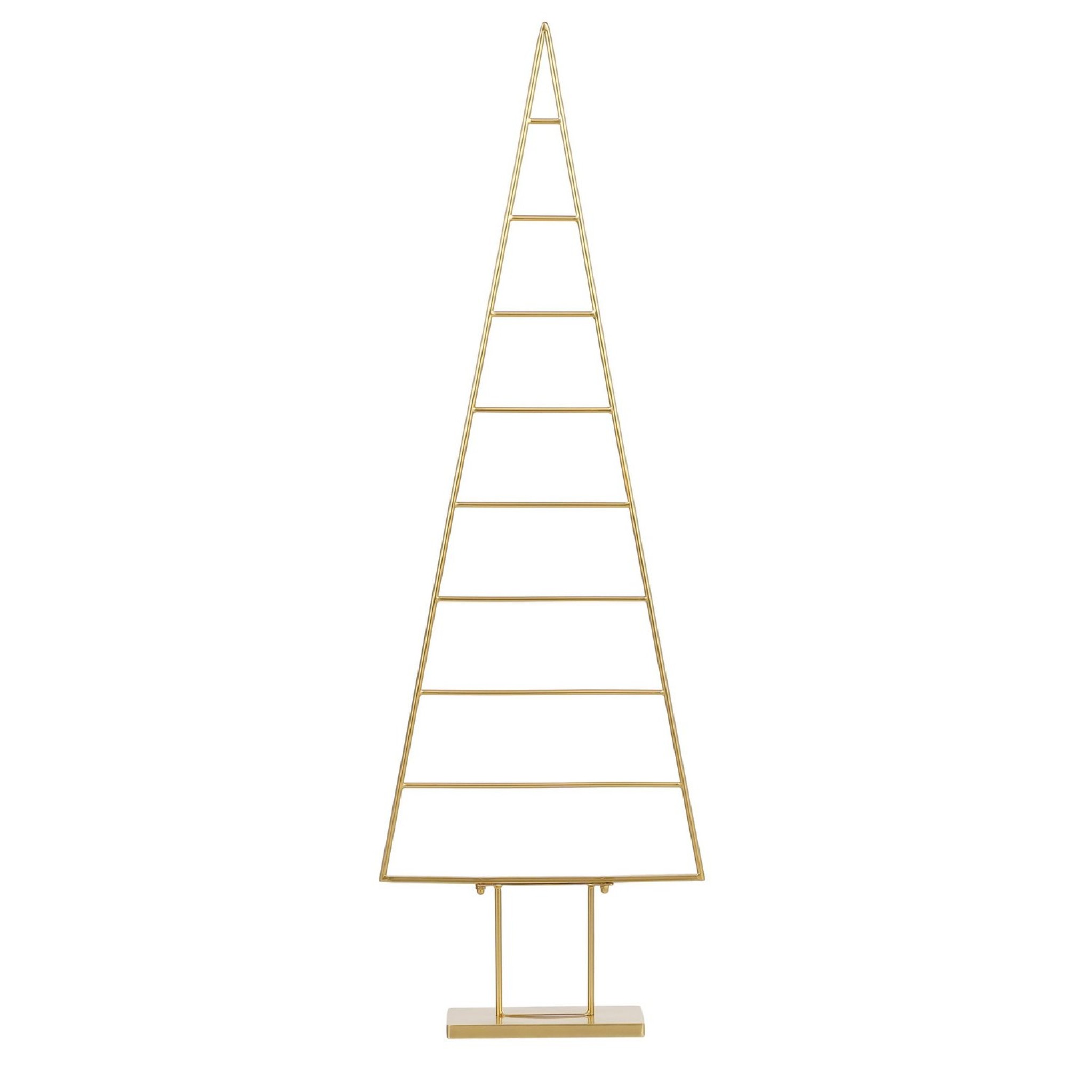 Gouden metalen kerstboom van Mica Decorations, L50 x B15 x H152 cm. Voorzien van 9 niveaus voor ornamenten, lichtjes of LED-kaarsjes. Stijlvol alternatief voor traditionele kerstboom.