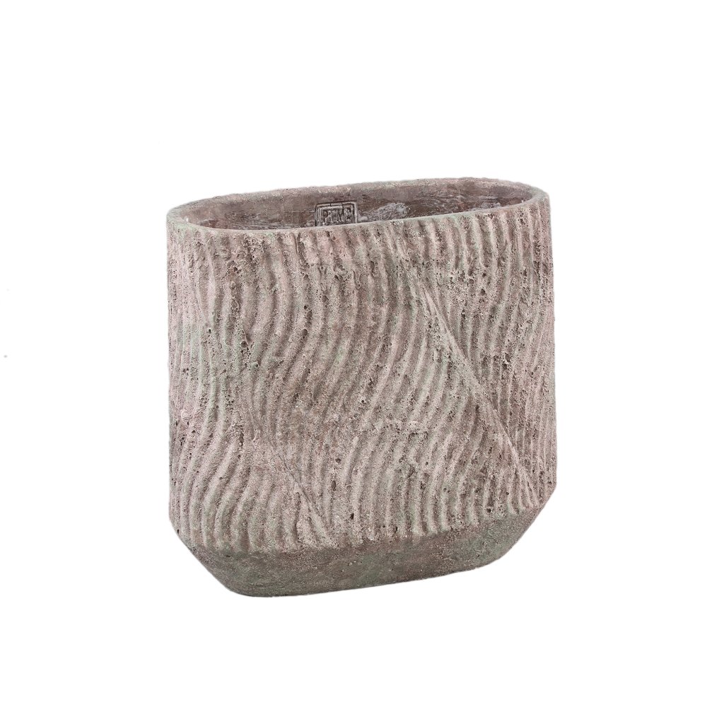 Diesel Bloempot | Grijs Cement | Ovaal M | Golvende Lijnen & Ruwe Structuur – 28 cm - PTMD | Koop Online bij Goudenbod