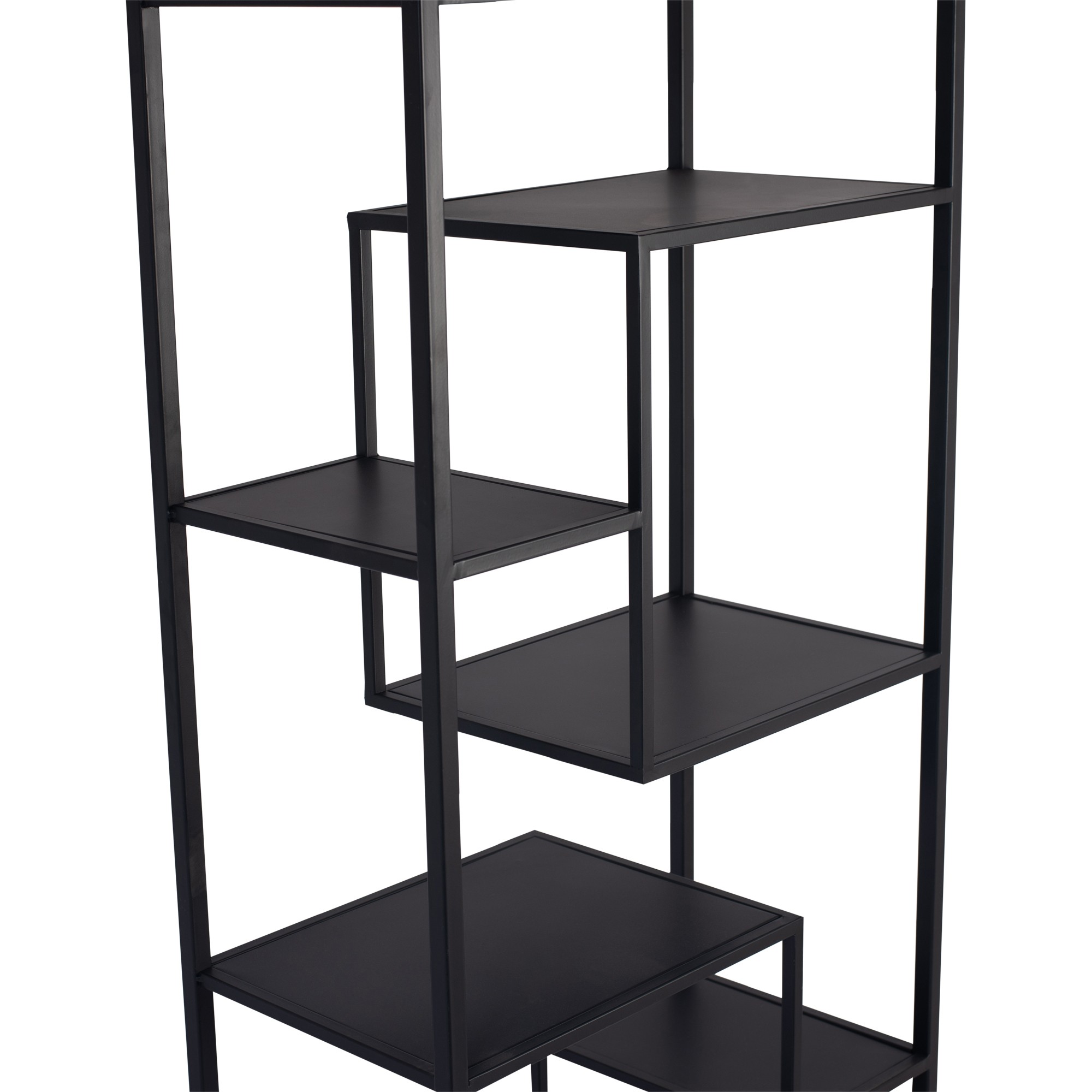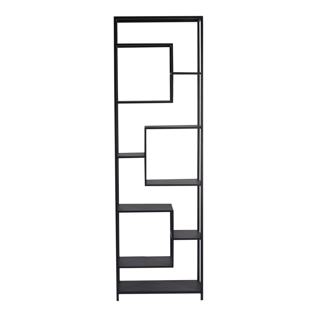 Industriële open kast van zwart ijzer met 10 speels geplaatste planken van verschillende hoogtes. Perfect voor het tentoonstellen van boeken, planten of woonaccessoires in moderne en stoere interieurs. Afmetingen: 30x195x60 cm.