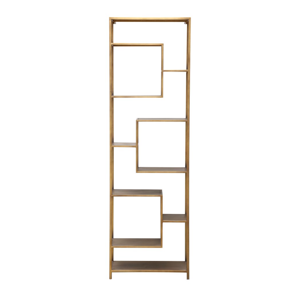 Duana Playful Gold Iron Open Cabinet High | Gouden Metalen Open Kast | Meerdere Plateaus – 195 cm Hoog