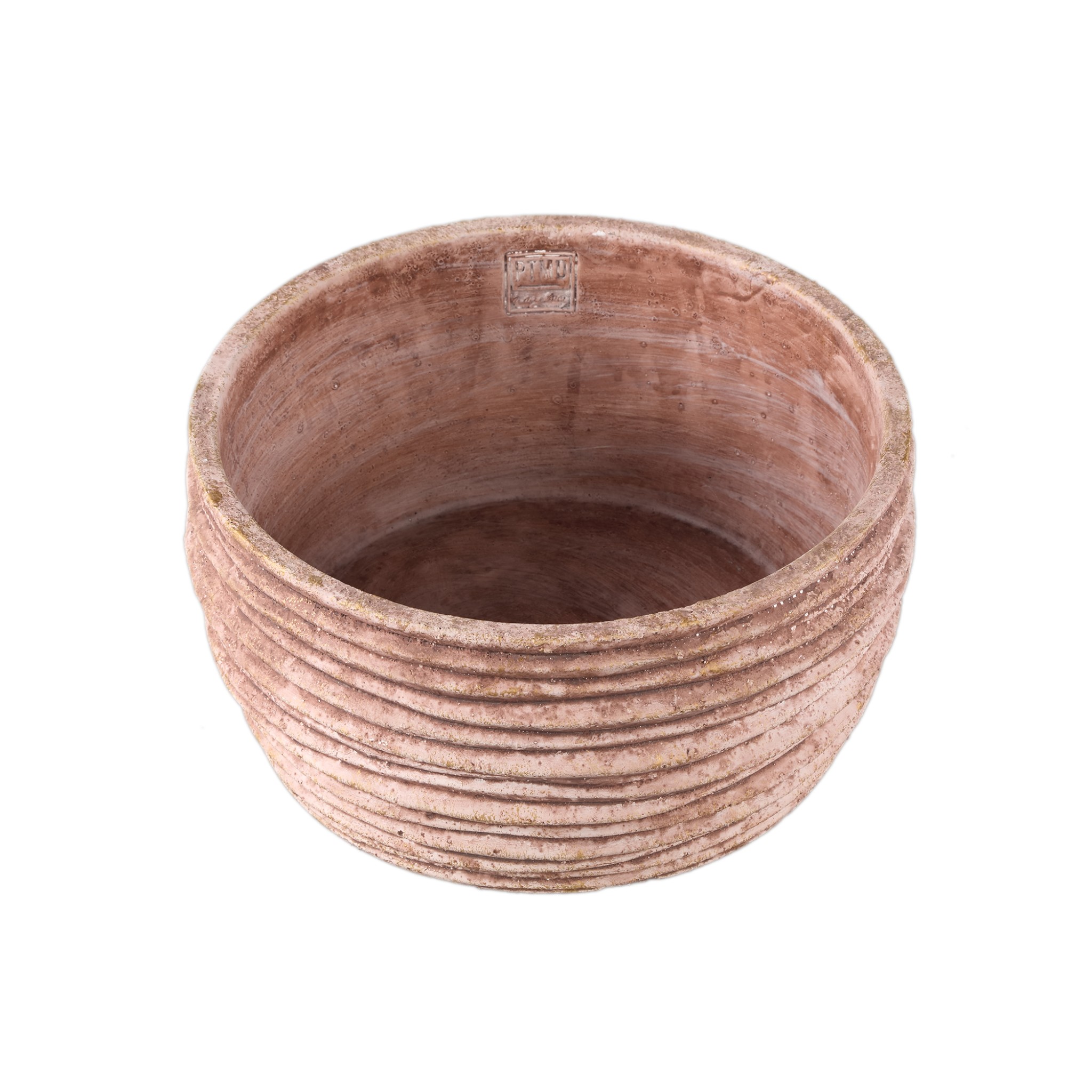 Einnas Brown Round Cement Pot Ribbed Low | 30x30x15 cm