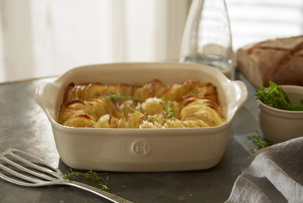 De Emile Henry Schaal vierkant – 280x230 mm – Argile is een veelzijdige, hoogwaardige keramieken schaal die ideaal is voor gratin, moussaka, geroosterde of gevulde groenten en vrijwel alle andere gerechten.