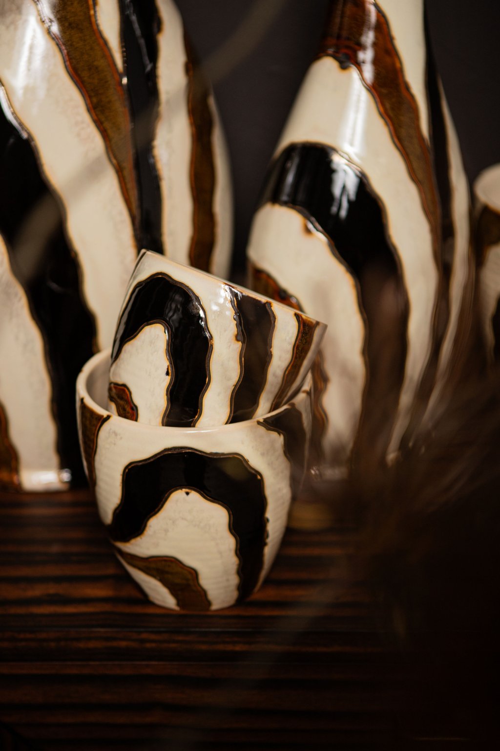Evelin Dark Brown Round Ceramic Pot With Lines L