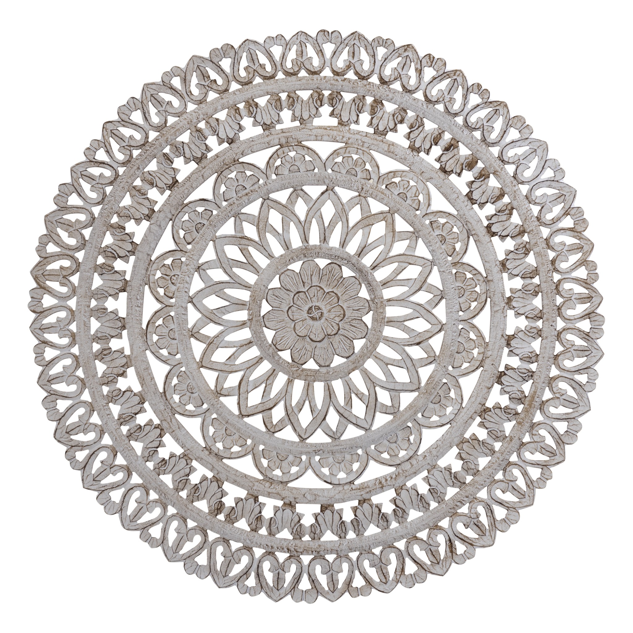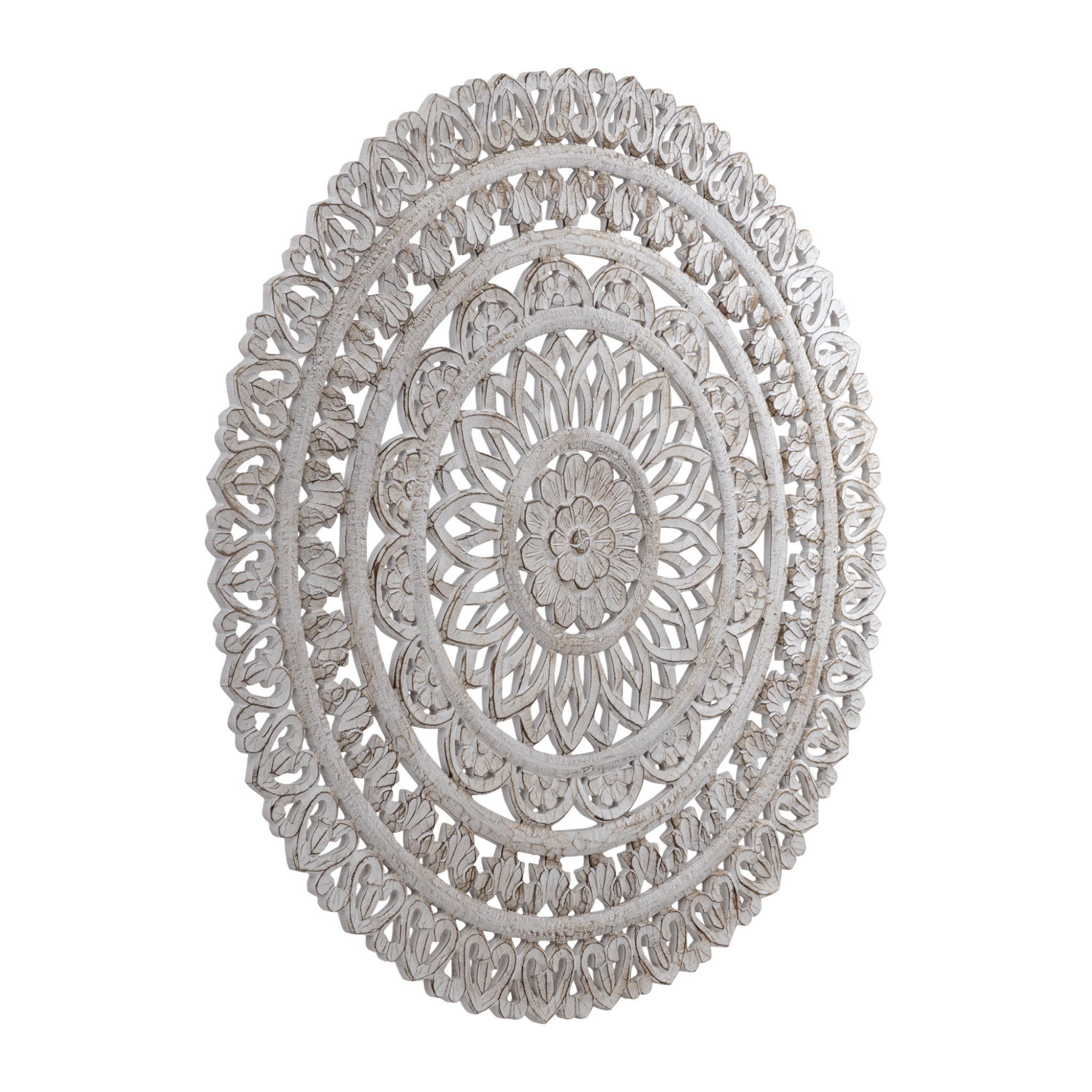Farris Cream Round MDF Wall Panel Carved S | Handgesneden Luxe Wandpaneel 90x90 cm