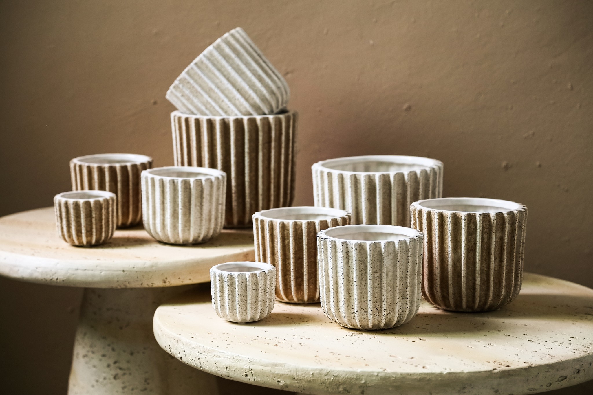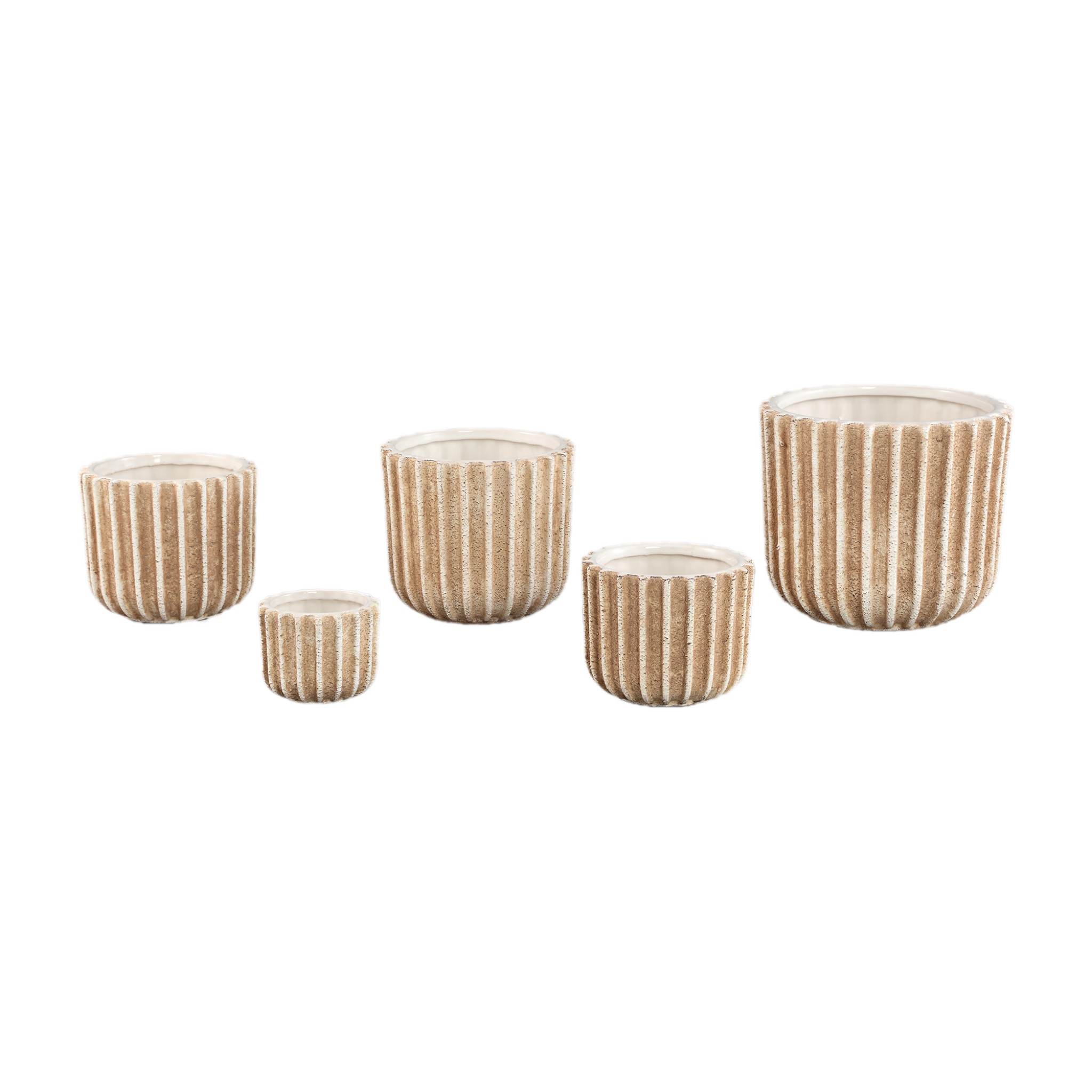 Ghada Bruine Keramische Pot – Rond met Lijnpatroon XL