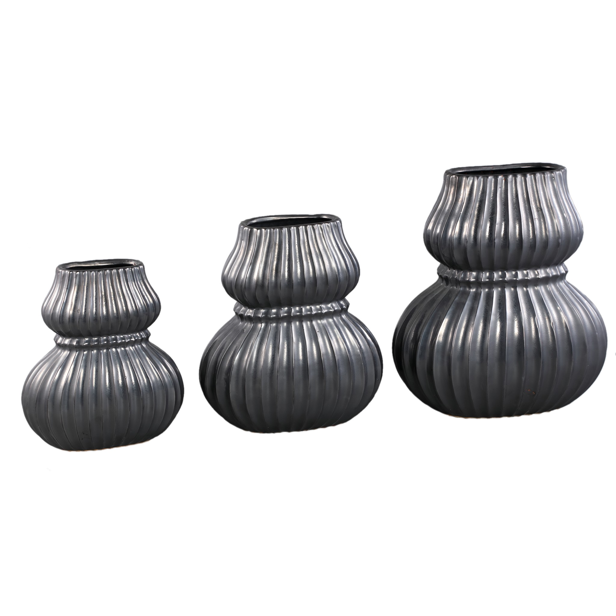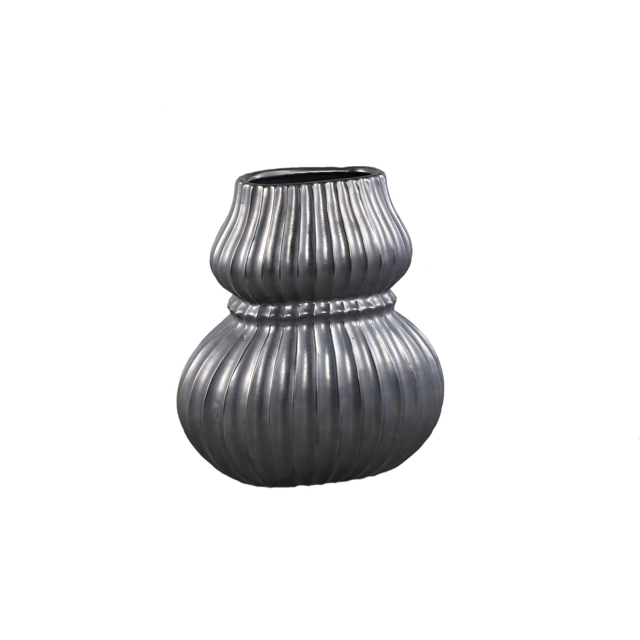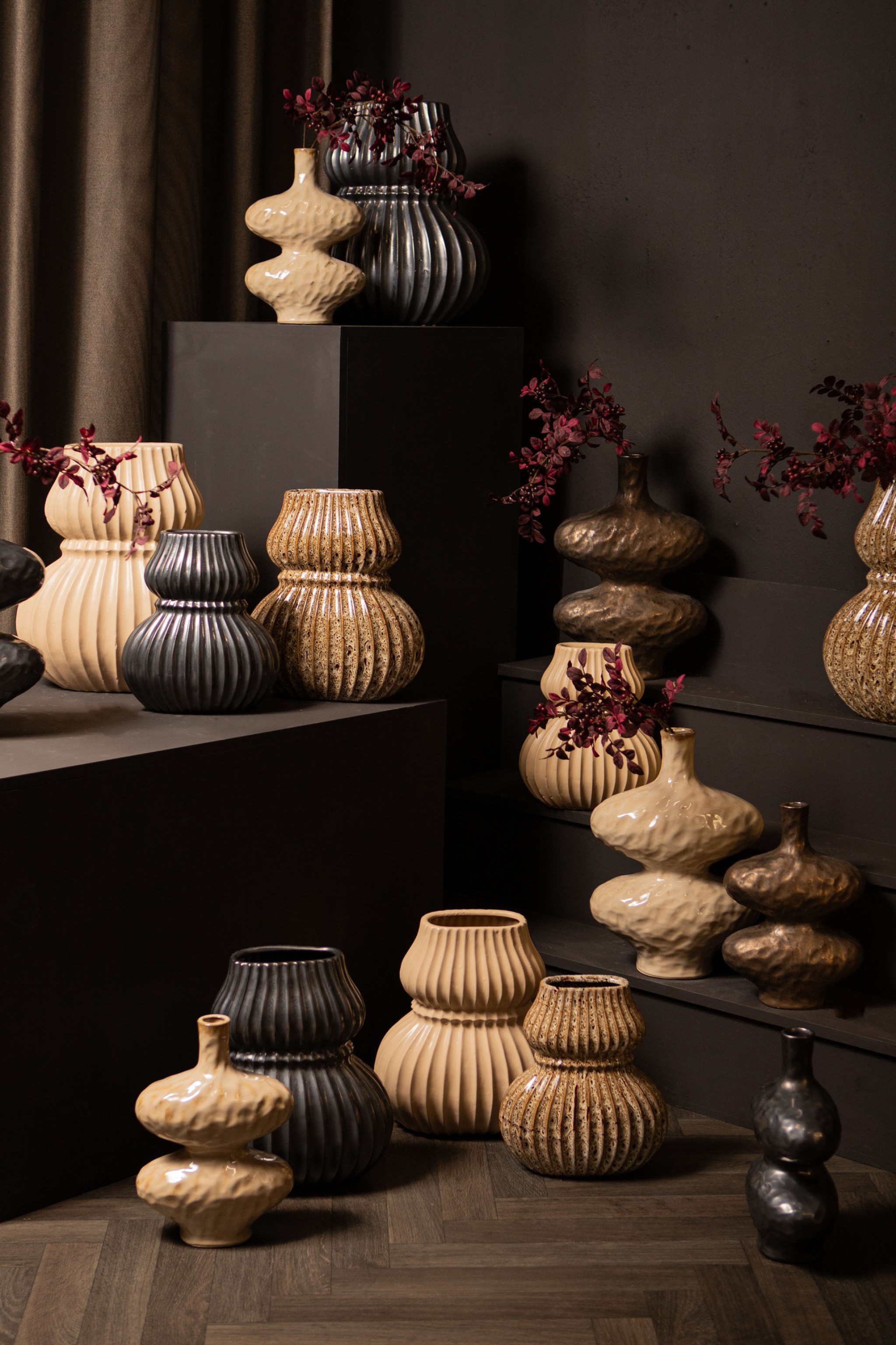 Halta Black Ceramic Vaas | Ovale Bulby Vaas Ribbed M | 19×35×30 cm