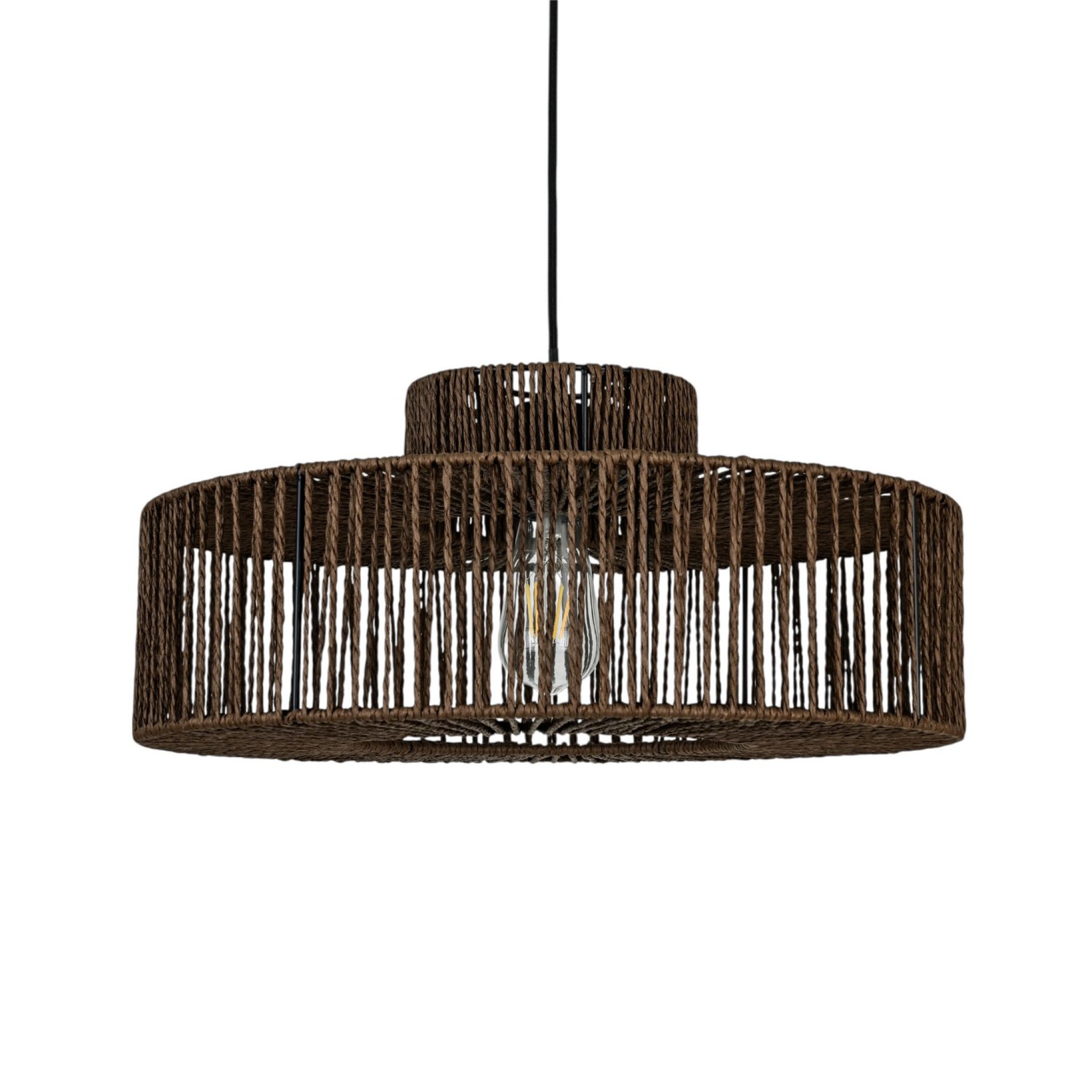 Hanglamp ELISA | Walnoot Bruin | Ø45x21 cm | Touw | Piramide Boho Ufo Lamp