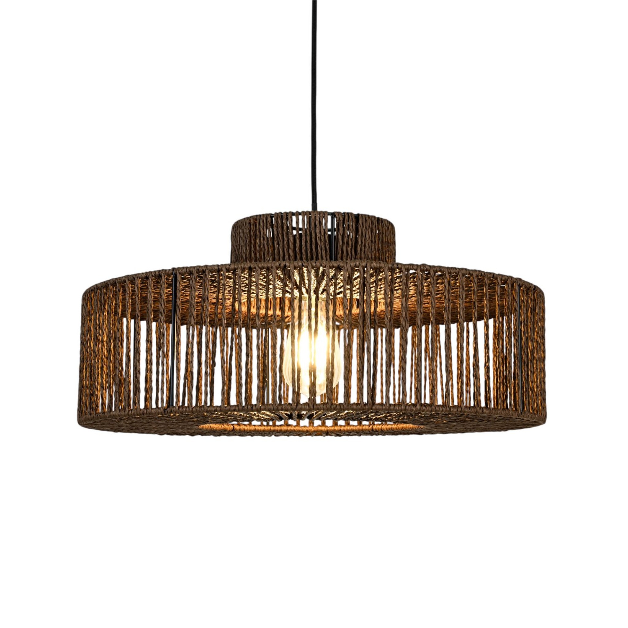 Met een afmeting van Ø45x21 cm en een verstelbare kabel tot 120 cm is de lamp ideaal voor boven eettafels, in de woonkamer of boven een zithoek. Het touw verspreidt het licht op een zachte en natuurlijke manier, waardoor een gezellige en uitnodigende ambiance ontstaat.
