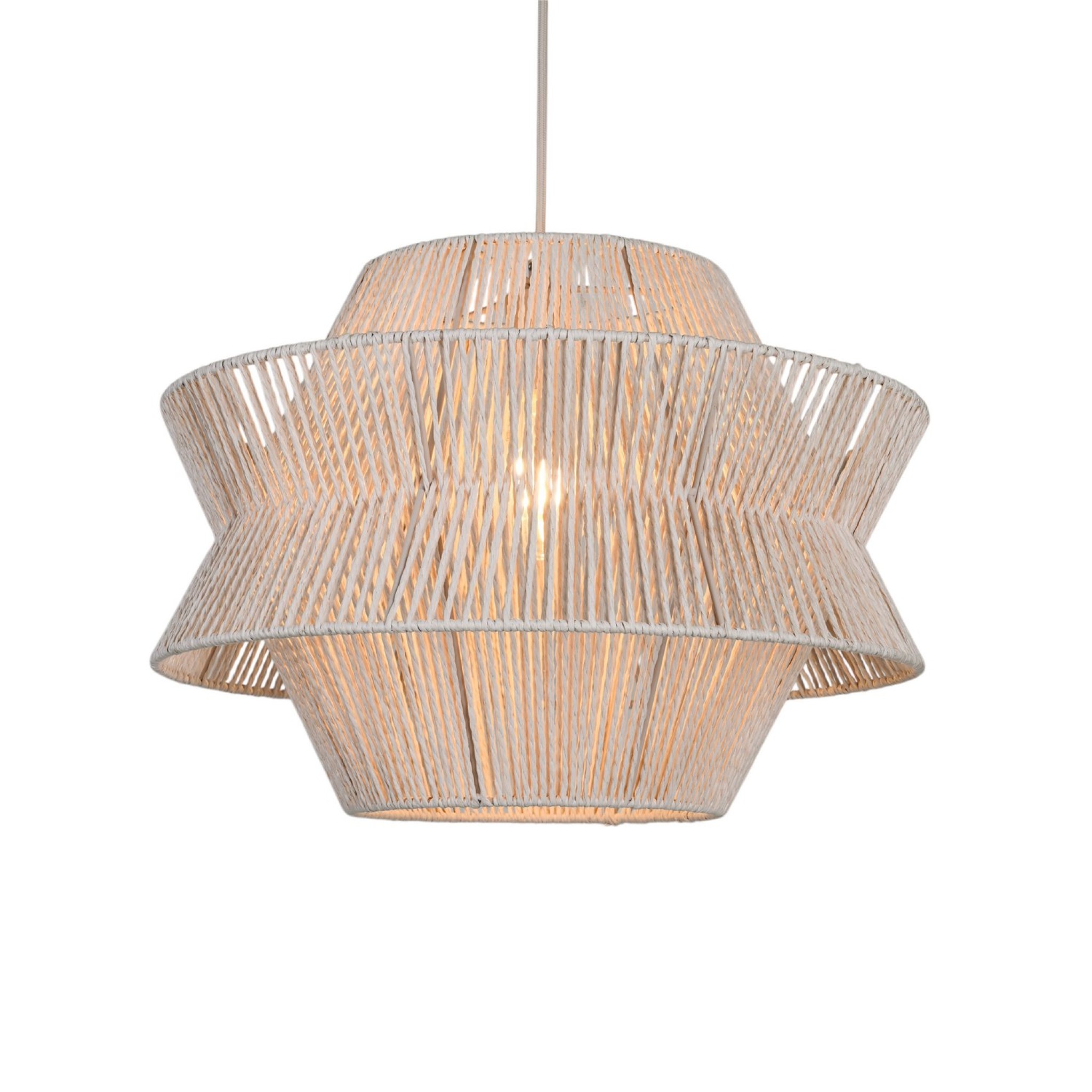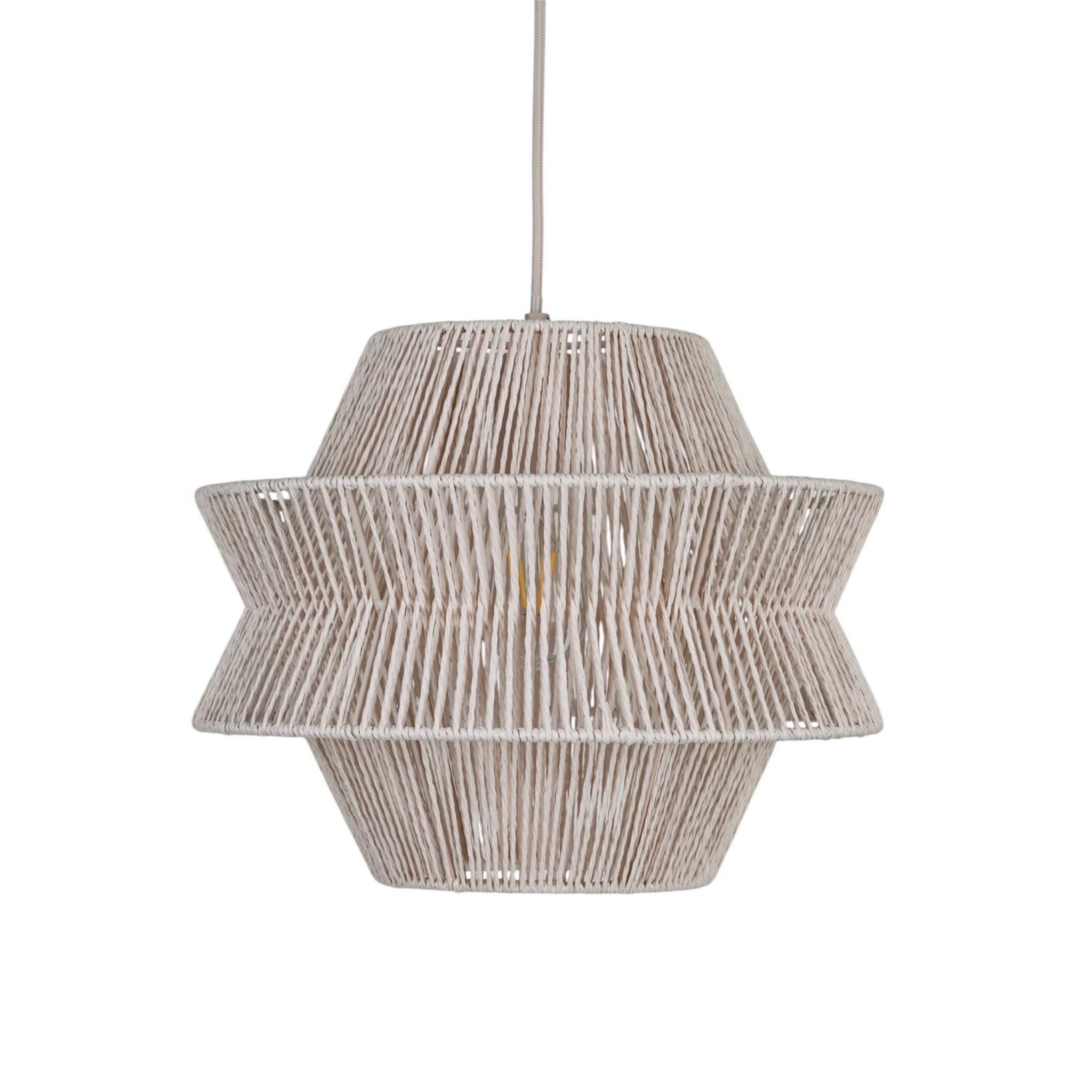 Handgeweven touw hanglamp in piramidevorm, Ø35x28 cm, beige. Creëer een warme boho, Japandi of beach sfeer in je interieur.
