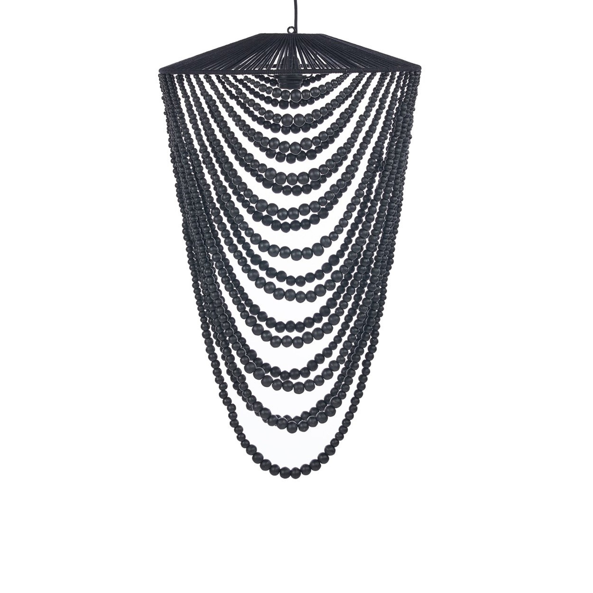 Houten Kralenkroonluchter | Zwart | Handgemaakte Hanglamp 47x80 cm - Bazar Bizar | Koop Online bij Goudenbod