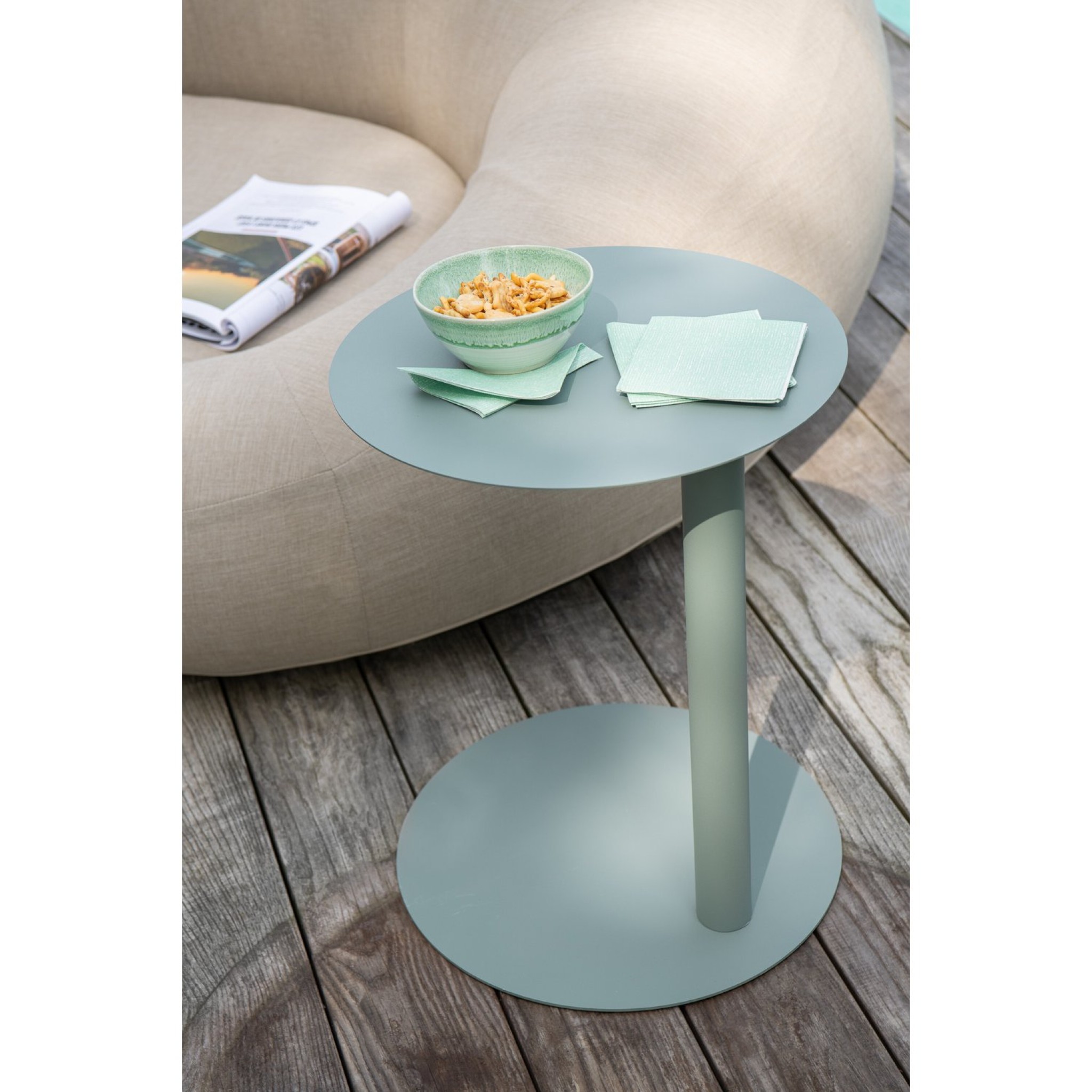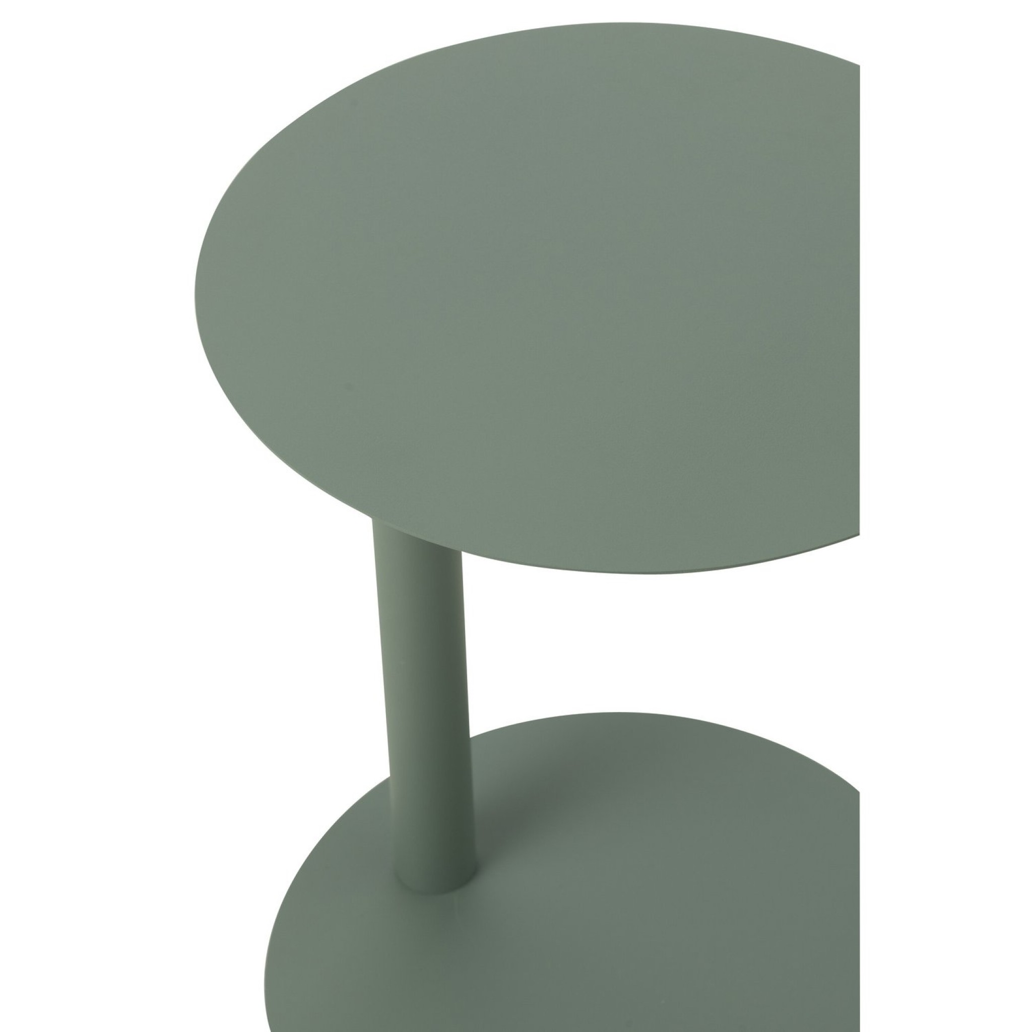 Ronde groene bijzettafel van J-Line, volledig van metaal. Perfect als stijlvolle aanvulling voor je woonkamer, slaapkamer of hal. Compact, stevig en multifunctioneel.