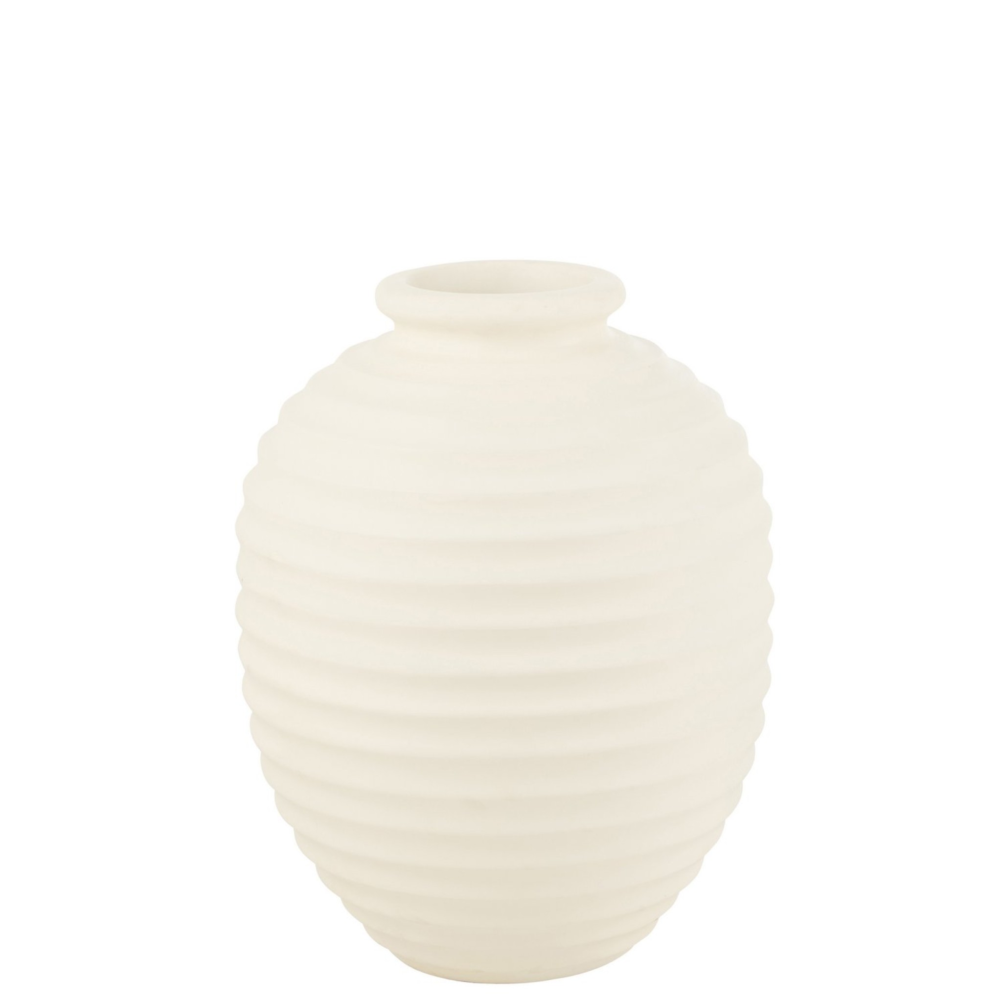 Elegante ovale bloempot van keramiek in wit met subtiele ribbelstructuur. Perfect voor grote planten of als stijlvolle kruikvaas in elk interieur.