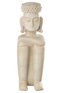 J-Line Decoratiebeeld Zittend Etnisch | Large L16 x B15 x H45 cm | Beige