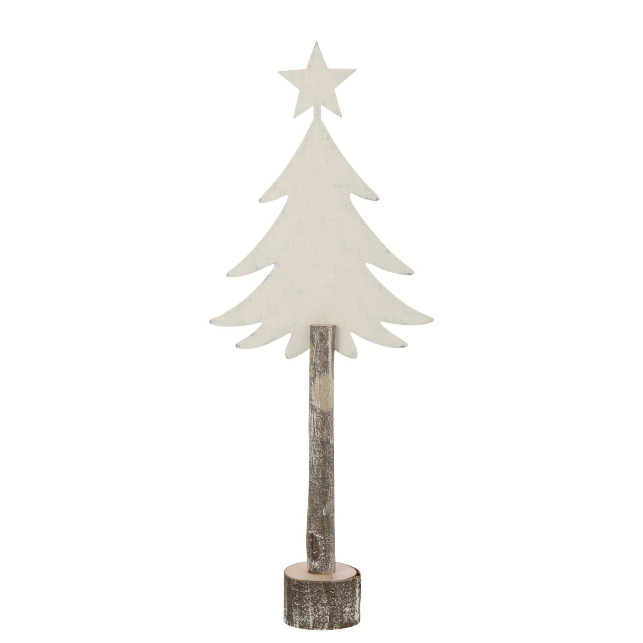 J-Line Kerstboom + Ster | Ijzer/Paulowniahout | Gebroken Wit | Large | 60 cm | Decoratieve Feestversiering