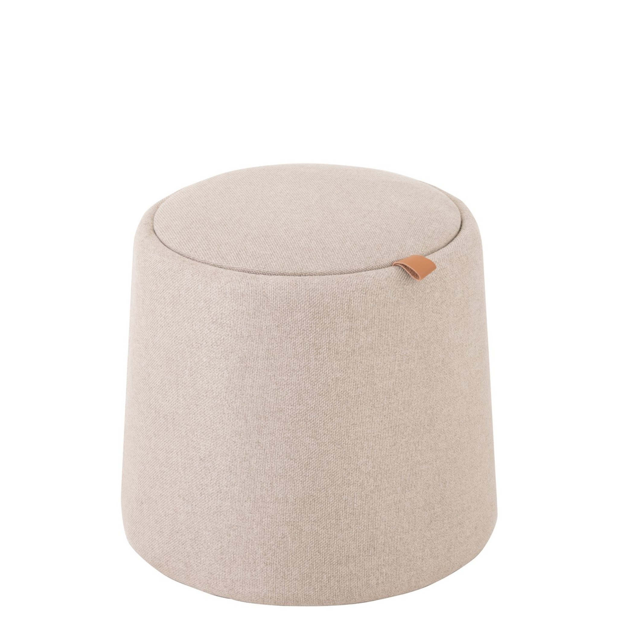 J-Line Poef Rond Textiel/Hout Beige | Compact & Stijlvol