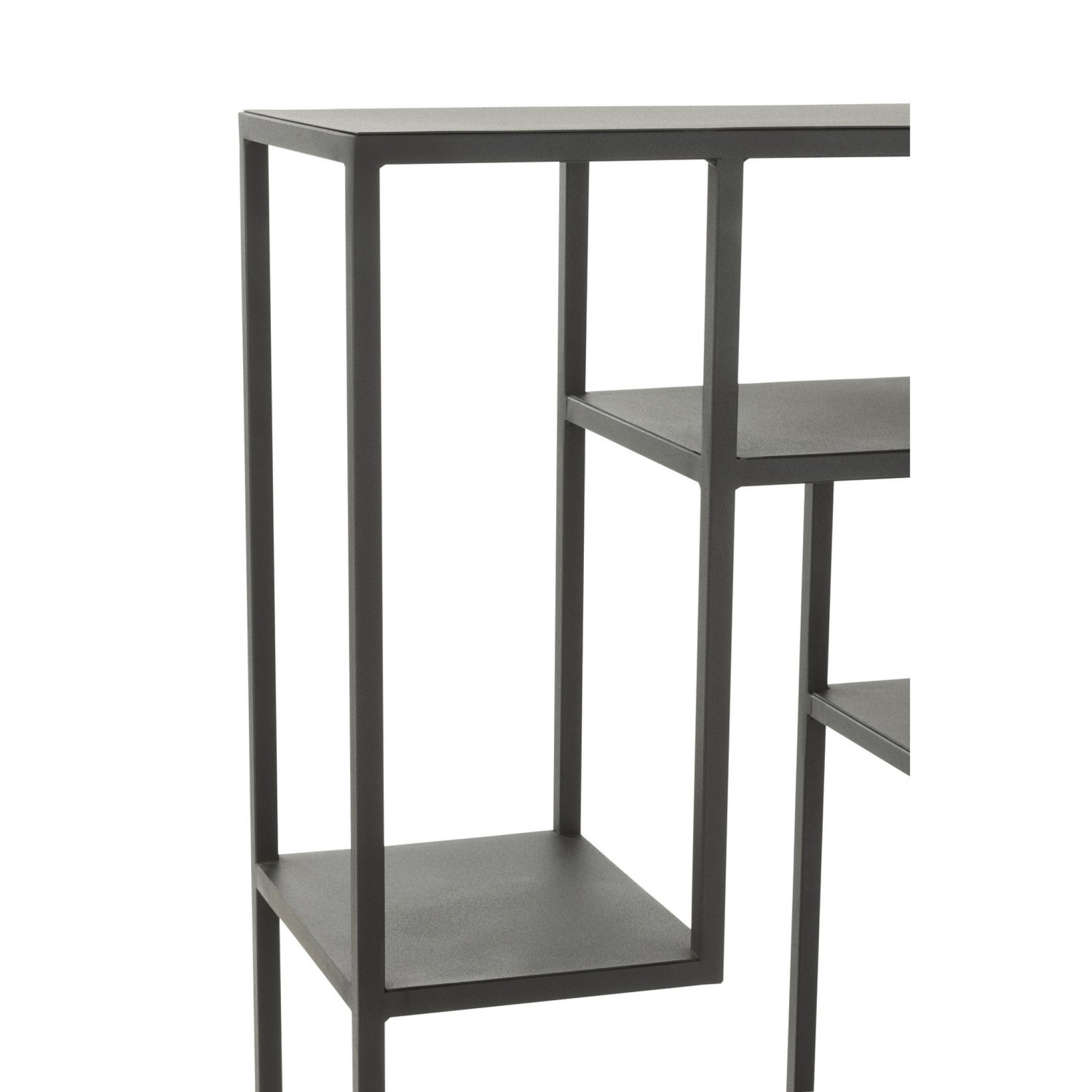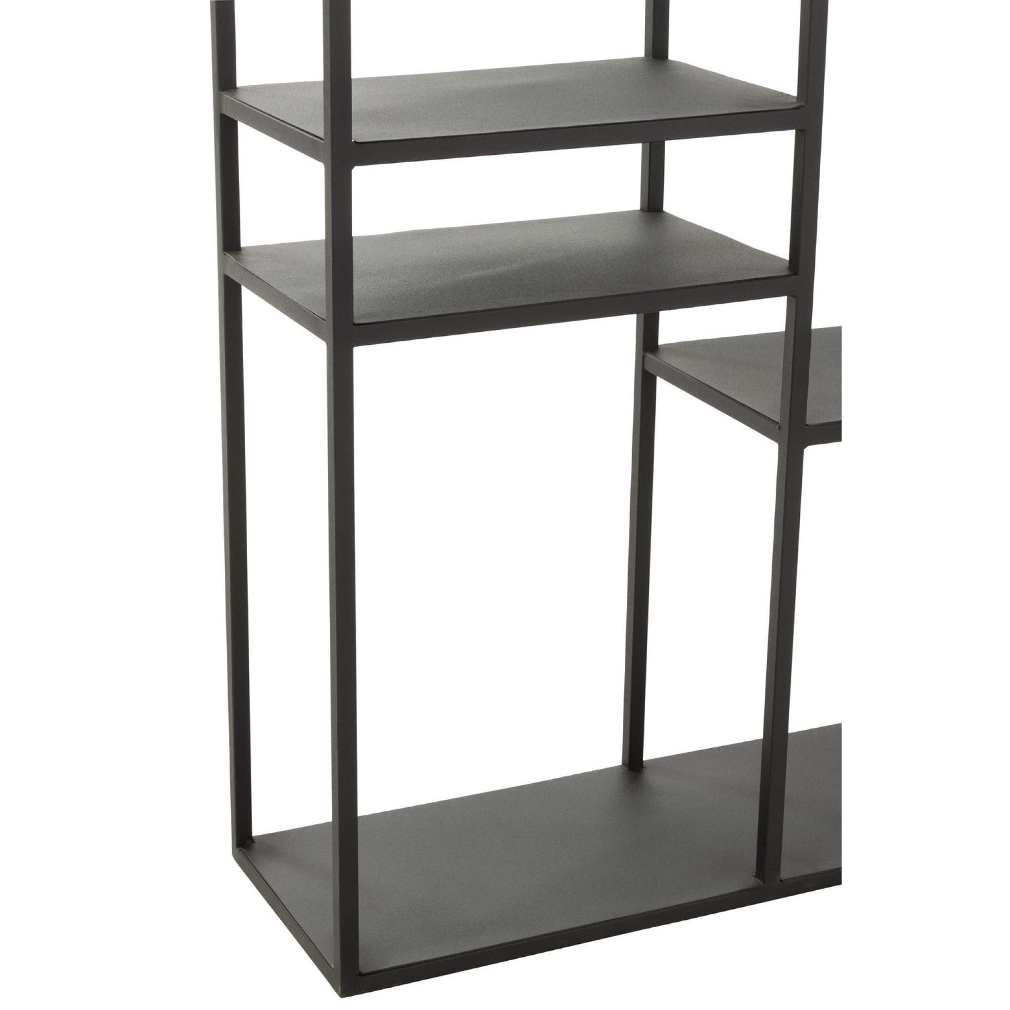 Stijlvol metalen rek van J-Line met ongelijke legplanken. Perfect voor een moderne en georganiseerde inrichting van woonkamer, slaapkamer of kantoor.