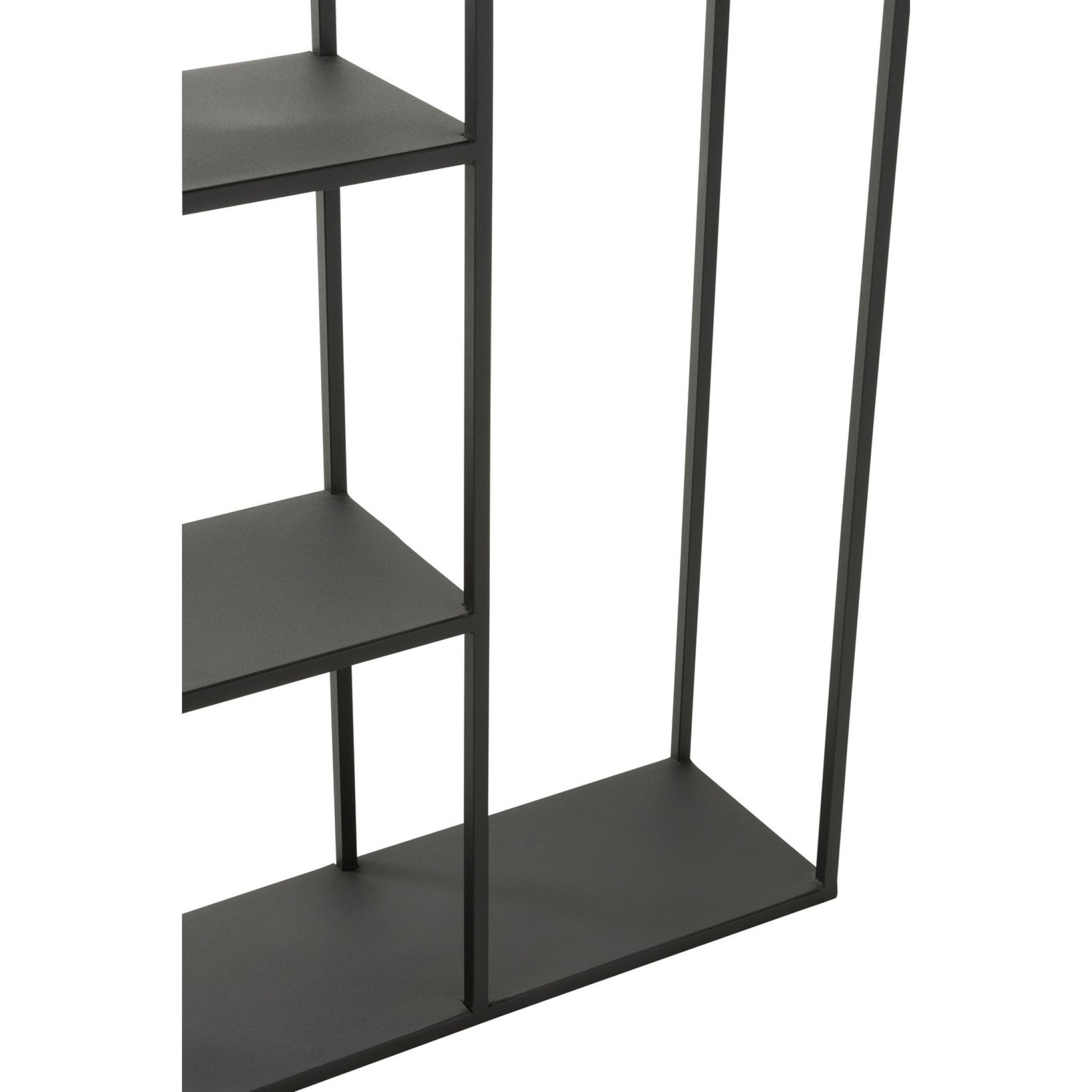 Het J-Line Rek Ongelijke Legplank combineert elegantie met functionaliteit en is de ideale manier om je interieur georganiseerd en stijlvol te houden. Gemaakt van hoogwaardig zwart metaal en voorzien van ongelijke legplanken, voegt dit rek een modern en speels accent toe aan elke ruimte.