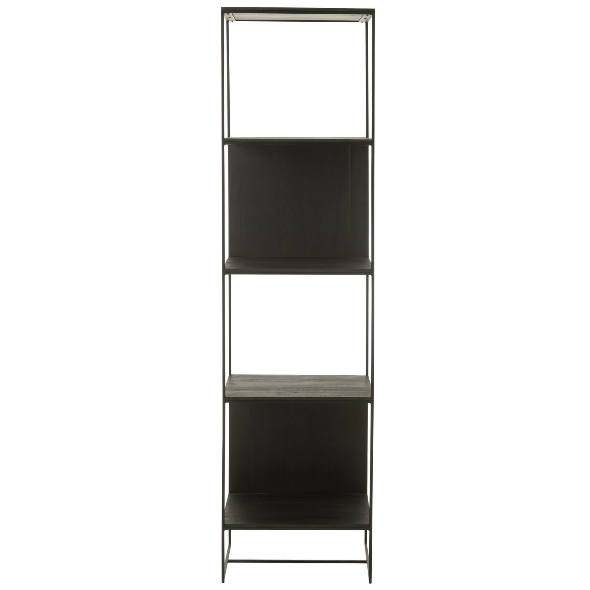 Strak en stijlvol rek van J-Line in zwart hout en metaal. Ideaal voor boeken, decoratie of opbergitems in woonkamer, kantoor of slaapkamer.