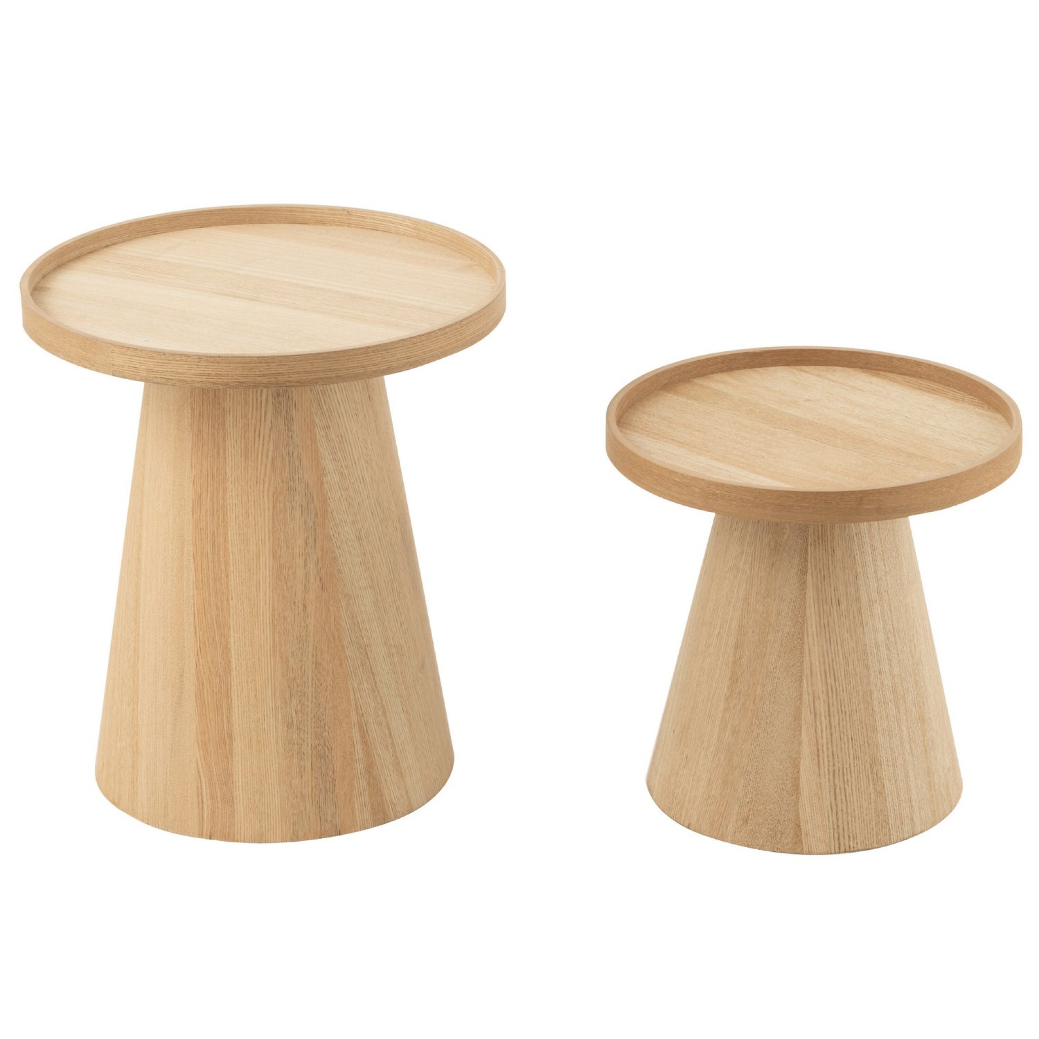 J-Line Set van 2 Bijzettafels Rond + Rand – Hout Natuurlijk