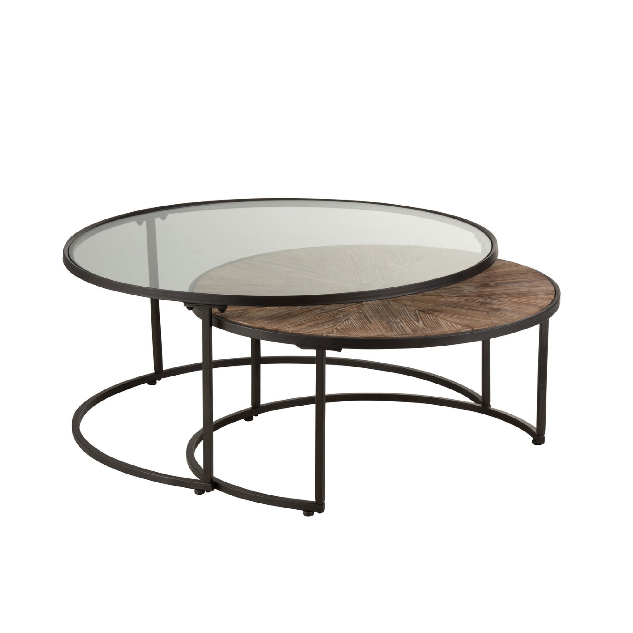 J-Line Set van 2 Salontafels Rond Metaal Zwart – Glas & Hout