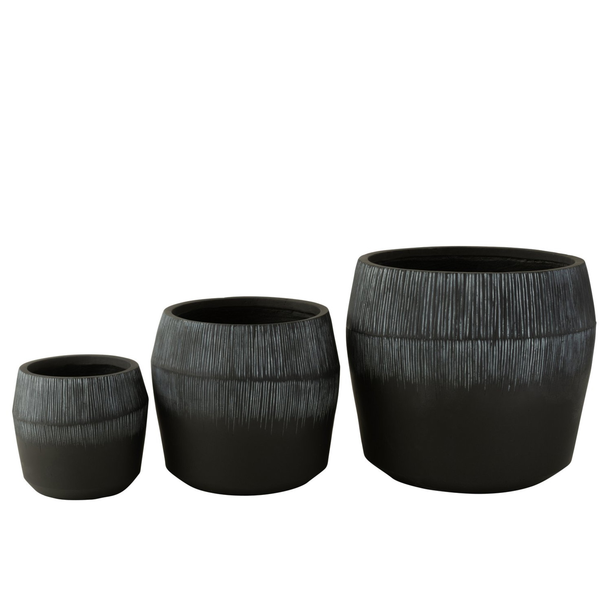 J-Line Set van 3 Bloempotten | Vezelklei | Zwart | Large/Medium/Small – Strepen & Ribbels - J-Line | Koop Online bij Goudenbod
