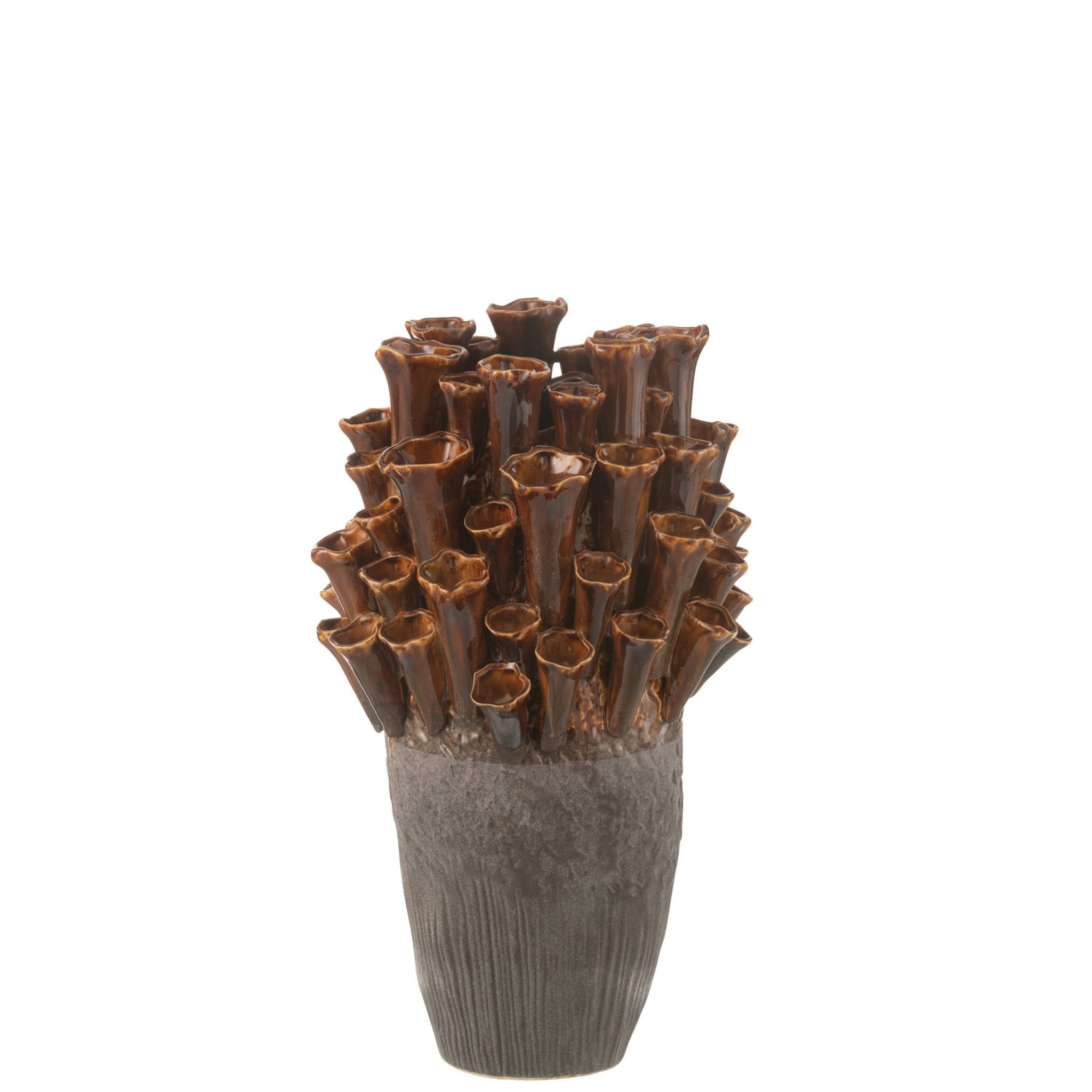 J-Line | Vaas Anemone | Porselein | Bruin/Grijs | Large – 46,5 cm