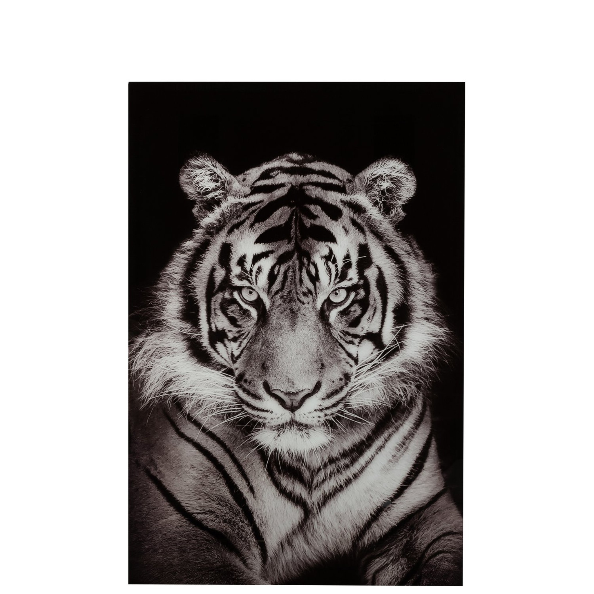 J-Line Wanddecoratie Tijger | Getemperd Glas | Zwart/Wit – Wandkader