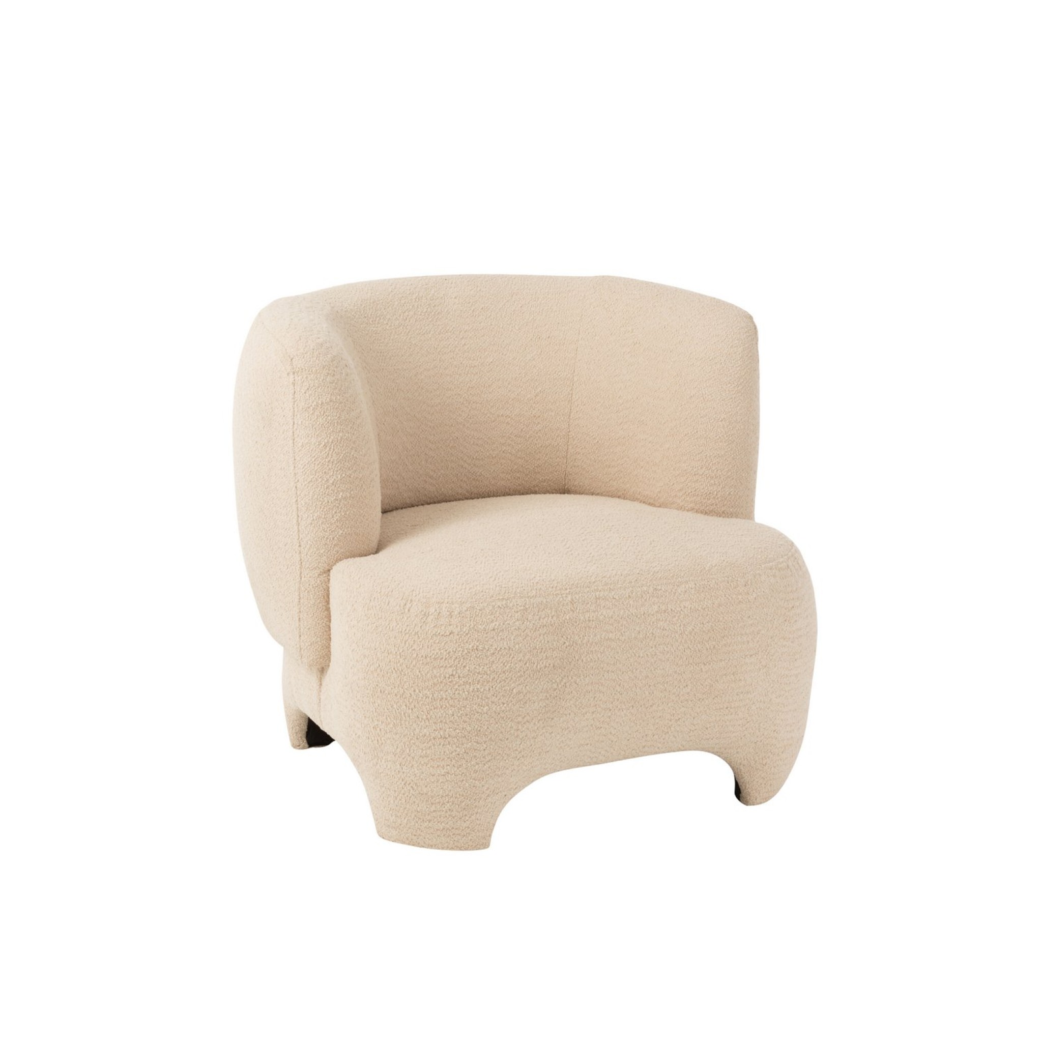 Stijlvolle J-Line 1-zits zetel in gebreide witte stof met houten frame. 80x79x71 cm, comfortabel en elegant voor woonkamer of leeshoek.