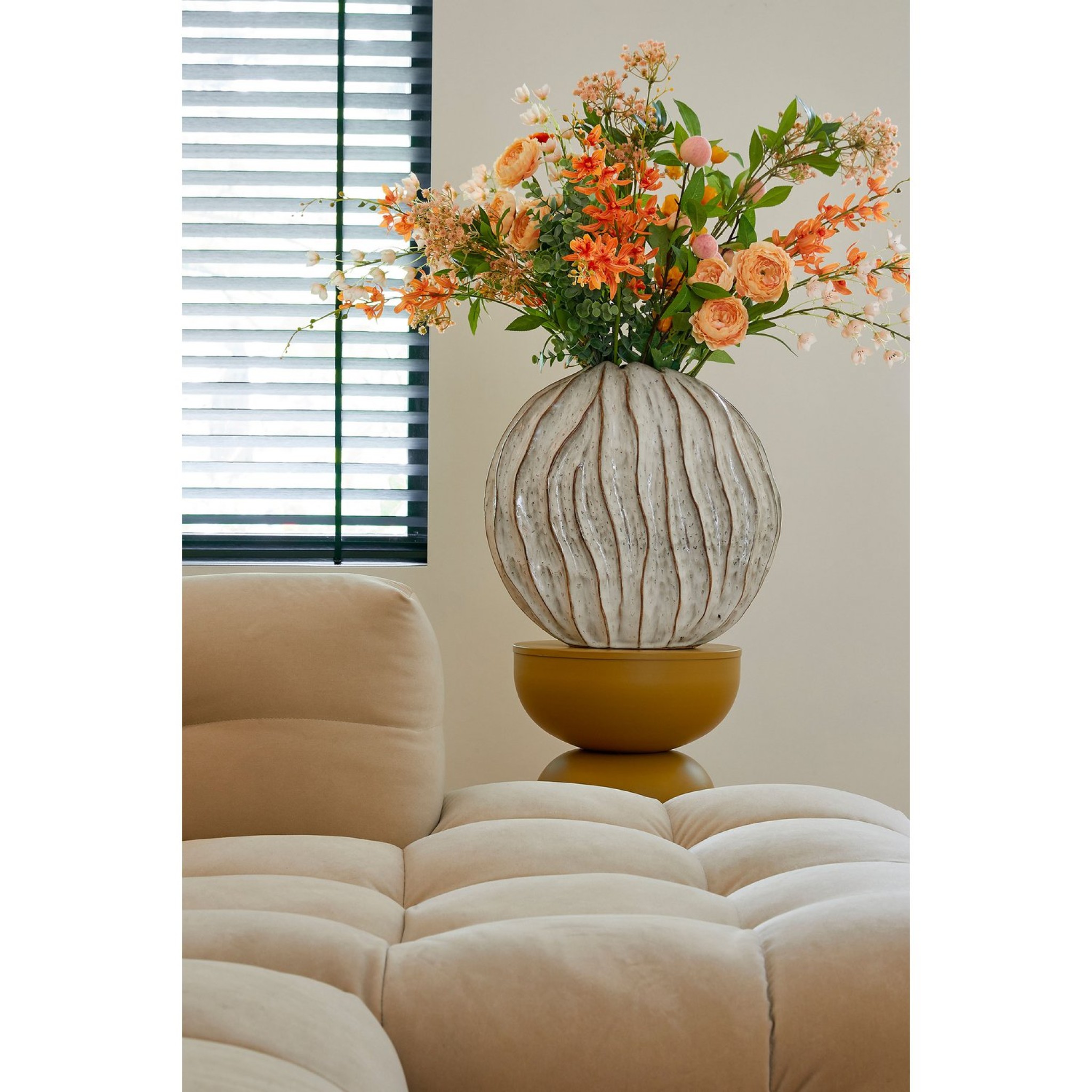 De Jovi vaas van Mica Decorations is een elegant handgemaakt keramiekstuk met een geglazuurde afwerking voor een subtiele glans. De ronde vorm in combinatie met het gestreepte reliëf geeft de vaas karakter, terwijl de rustige, neutrale basis hem geschikt maakt voor verschillende interieurstijlen.