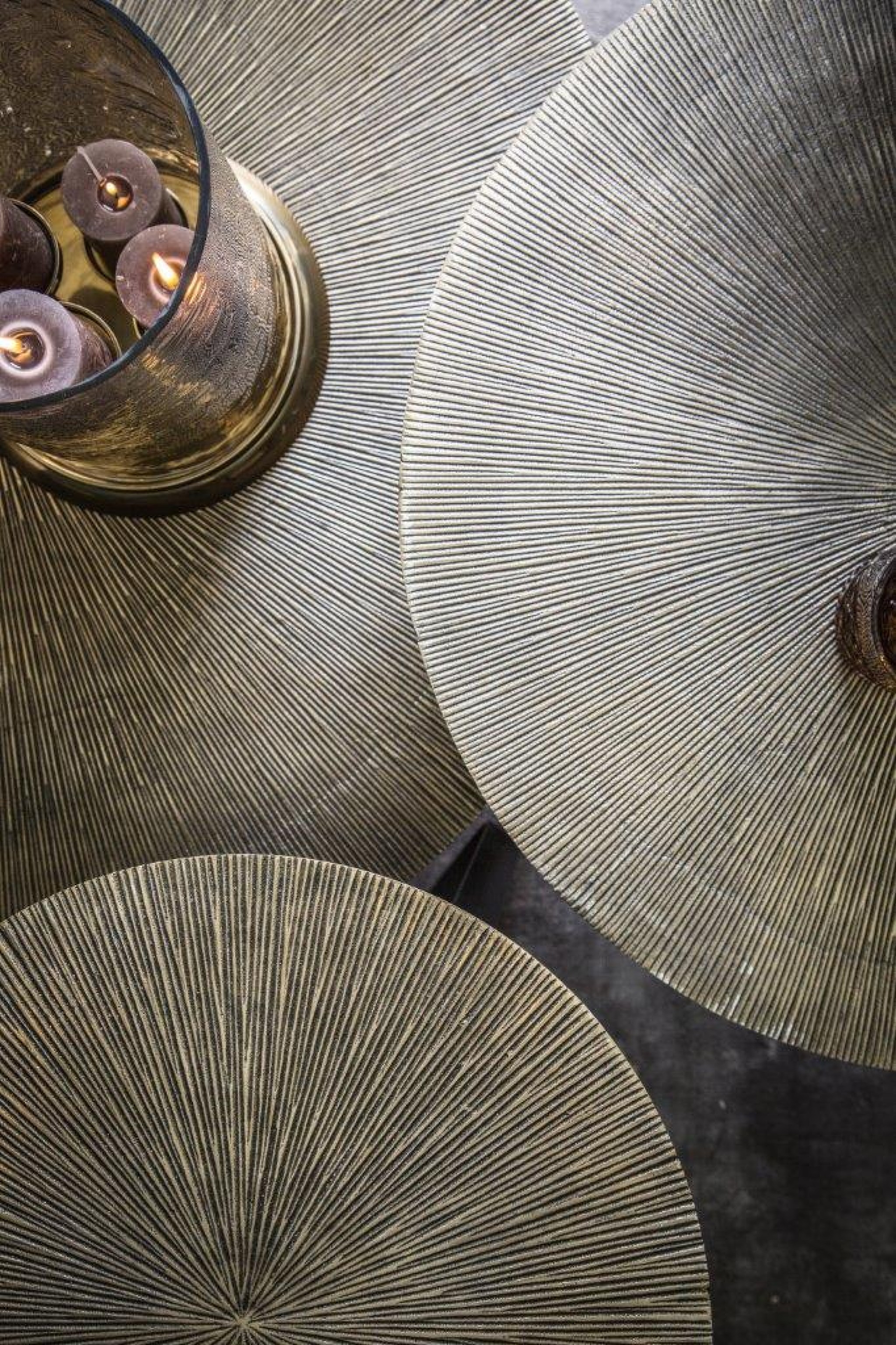 De Kae Gold collectie bestaat uit drie verschillende maten bijzettafels, waardoor je speelse en dynamische combinaties kunt maken. Voor het schoonmaken van het aluminium oppervlak adviseren wij Metal & Chrome Cleaner van Oranje Furniture Care, voorzichtig en zonder ruwe bewegingen, om de mooie uitstraling te behouden.