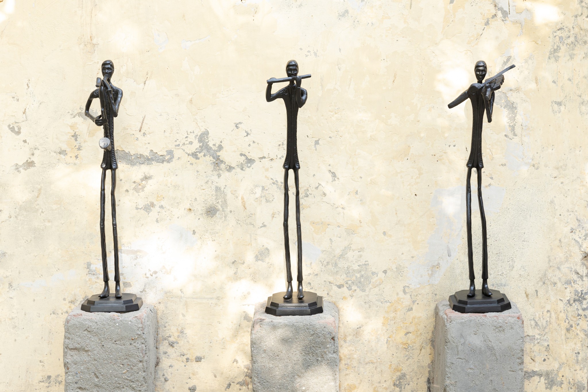 Kali Beeld | Man met Fluit Zwart Aluminium 70 cm