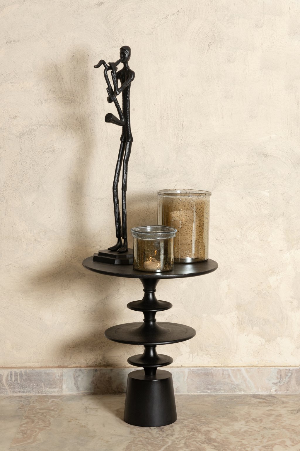 Het Kali Black Casted Alu Statue Man With Saxophone is een elegant decoratief beeld dat karakter en stijl toevoegt aan je interieur. Het beeld is vervaardigd van hoogwaardig gegoten aluminium met een zwarte afwerking en toont een man in een sierlijke houding terwijl hij saxofoon speelt.