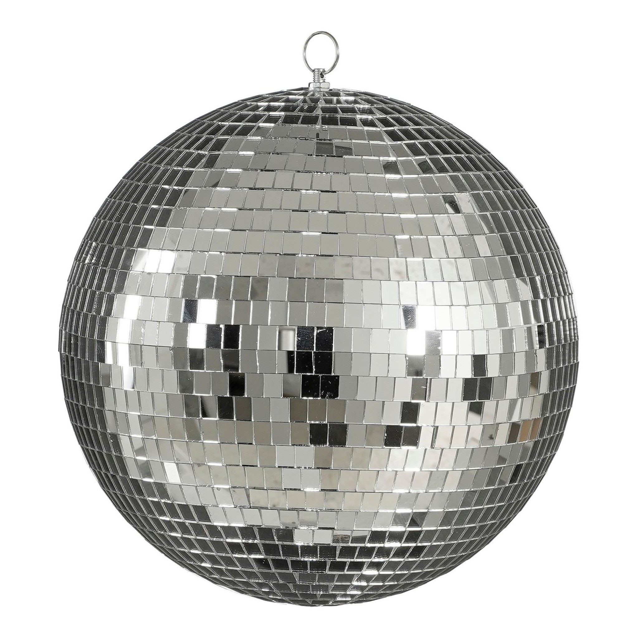 Zilverkleurige kerst discobal van Mica Decorations, Ø30 cm. Gemaakt van spiegelglas en eenvoudig op te hangen met haak. Brengt direct een feestelijke sfeer in huis.