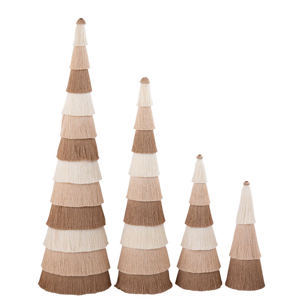 Kevene Cream Polyester Tassel Tree Statue S | Driekleurige Kerstboom