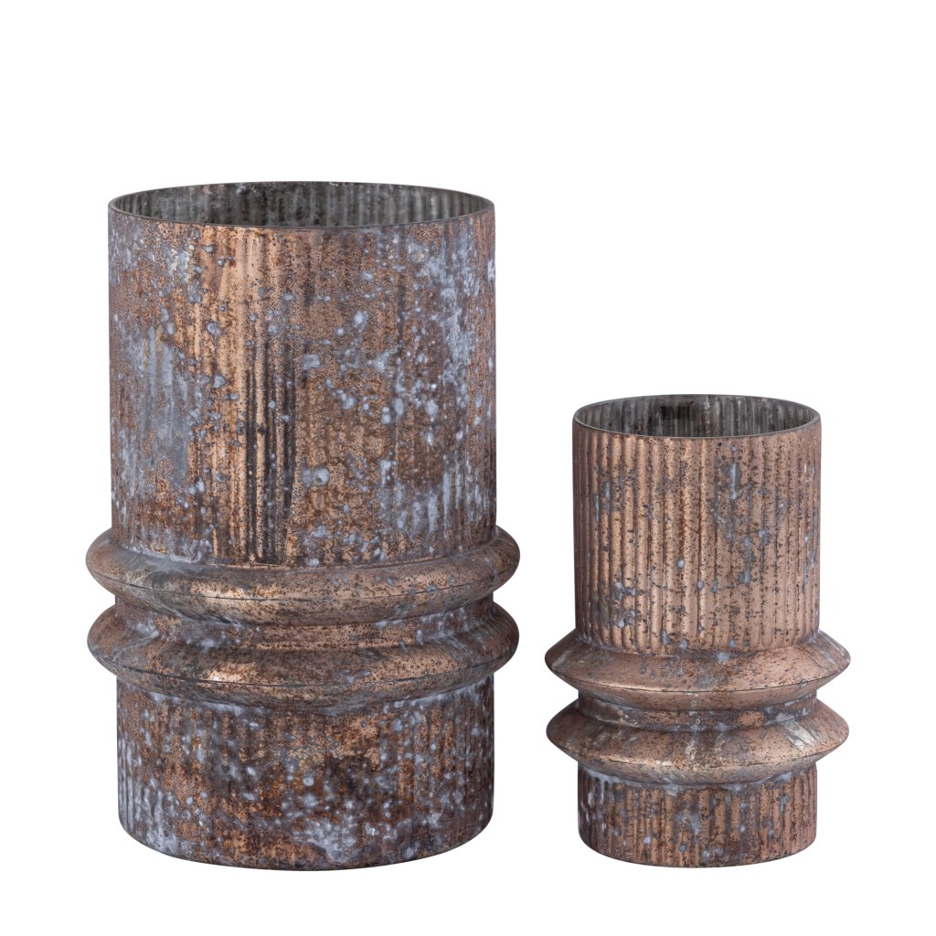 Koi Bronze Antique Stormlight Round Ribbed S | Decoratieve Vaas | Rond - PTMD | Koop Online bij Goudenbod