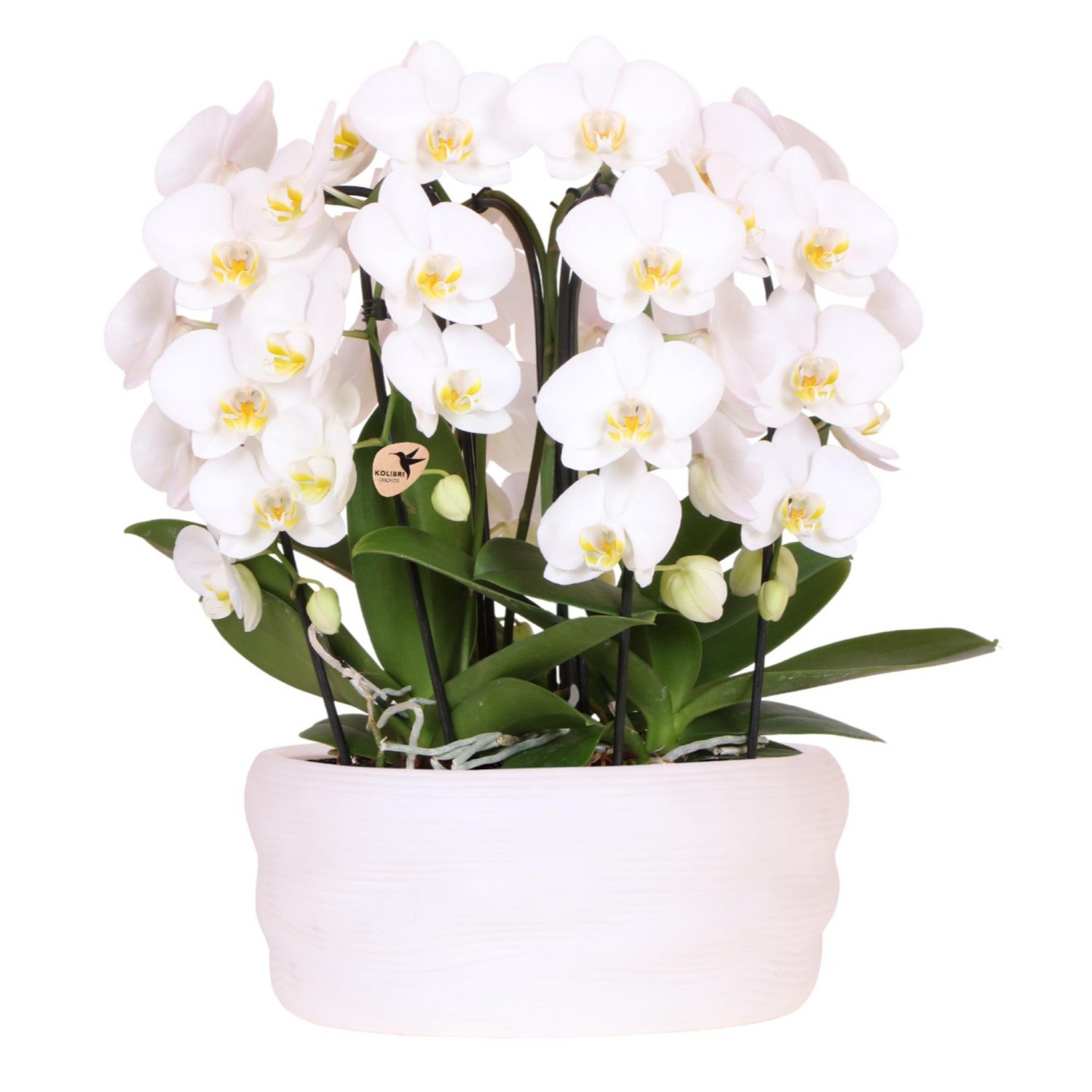 Kolibri Orchids | Witte Orchideeënset in Como Dish | 3x Niagara Falls 12 cm | Inclusief Easy Watering System