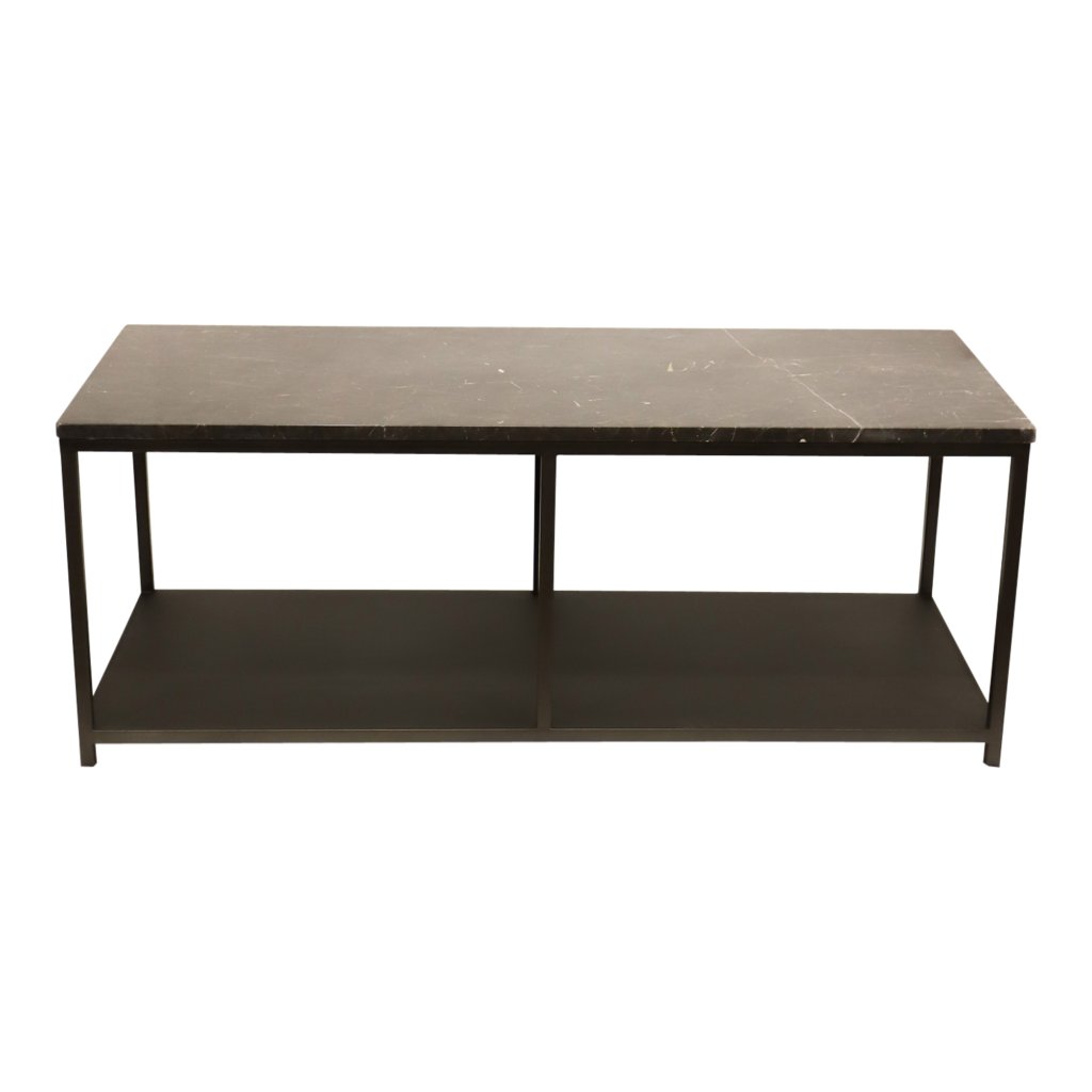 De Laco Brown Sidetable Marble Top Taupe Metal Frame is een elegante rechthoekige bijzettafel met een taupe marmeren blad en een stevig bruin metalen frame. De tafel beschikt over een extra onderplank, ideaal voor het opbergen of tentoonstellen van decoratieve items.