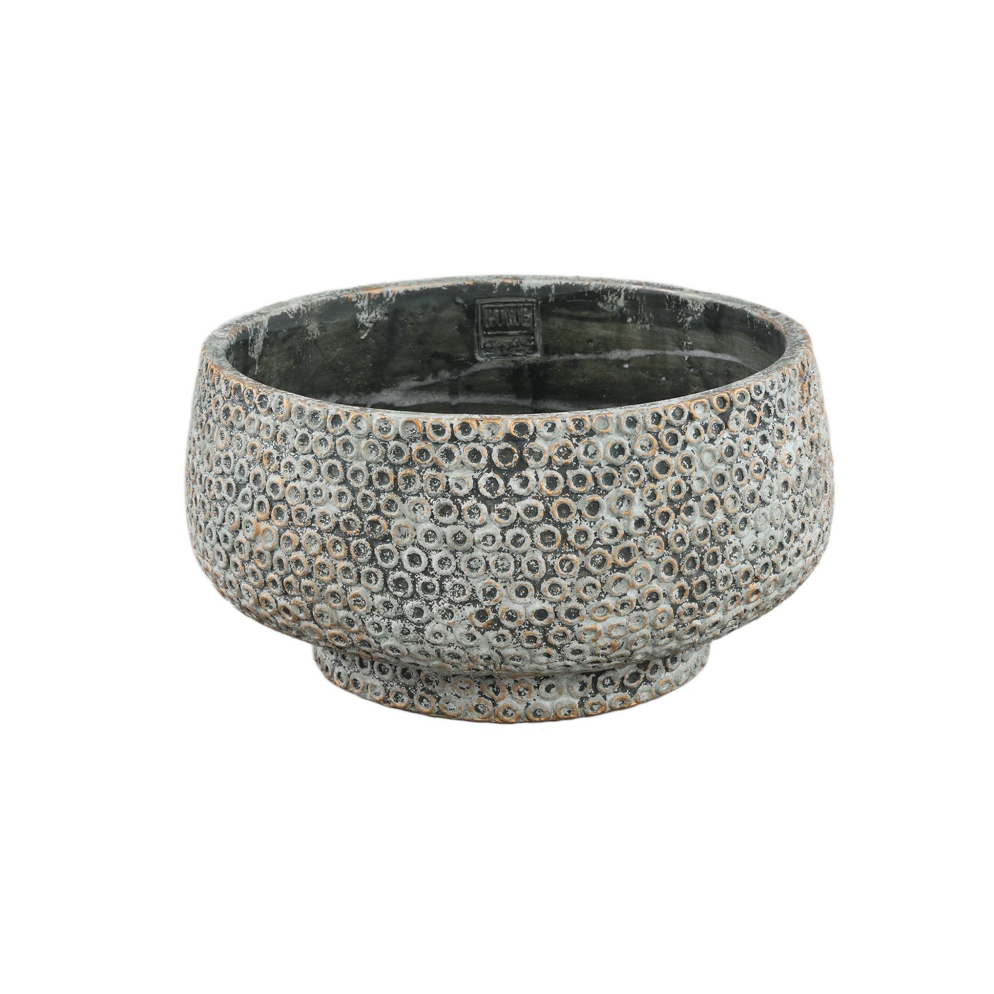 Laim Grey Cement Kom | Ronde L Kom met Dots Pattern | 30×15 cm