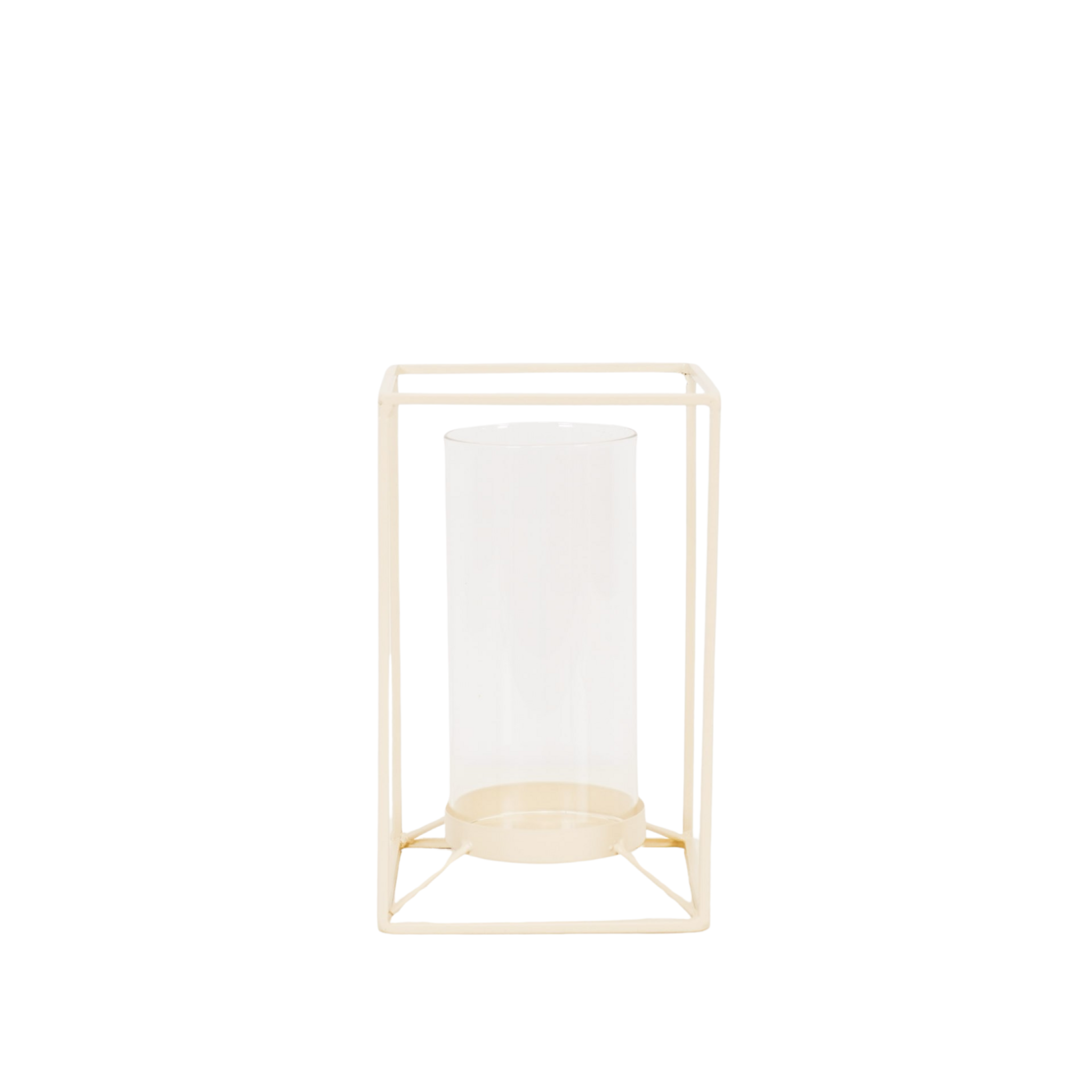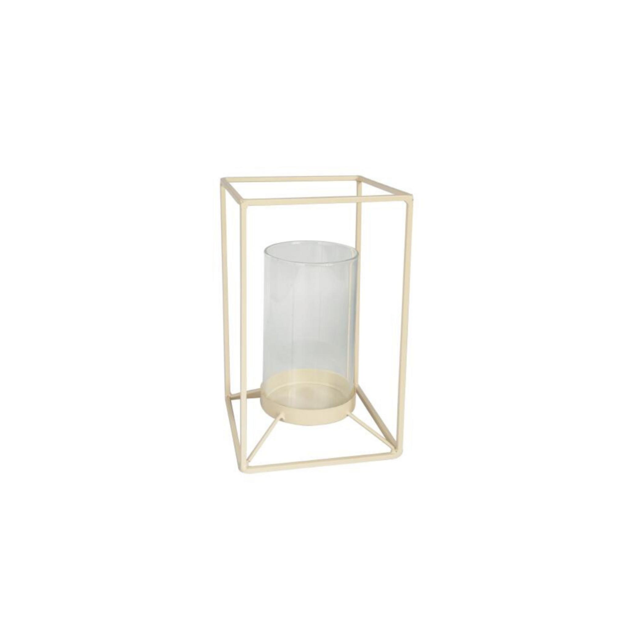 Zandkleurige lantaarn van metaal en glas (14,5x14,5x25 cm). Creëer een sfeervolle ambiance en stijlvolle woondecoratie.
