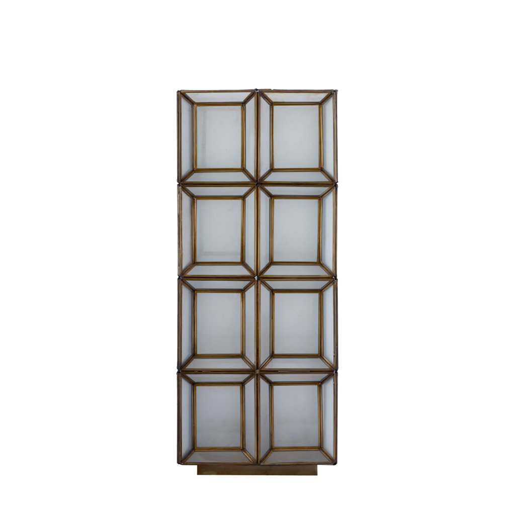 De Layra tafellamp combineert artistiek design met subtiele luxe. De lamp is opgebouwd uit rechthoekige elementen van wit melkglas, die samen een harmonieus geheel vormen. De zachte blauwgrijze tinten en donkere accentuering zorgen voor diepte en contrast, waardoor het licht een warme, sfeervolle gloed krijgt.