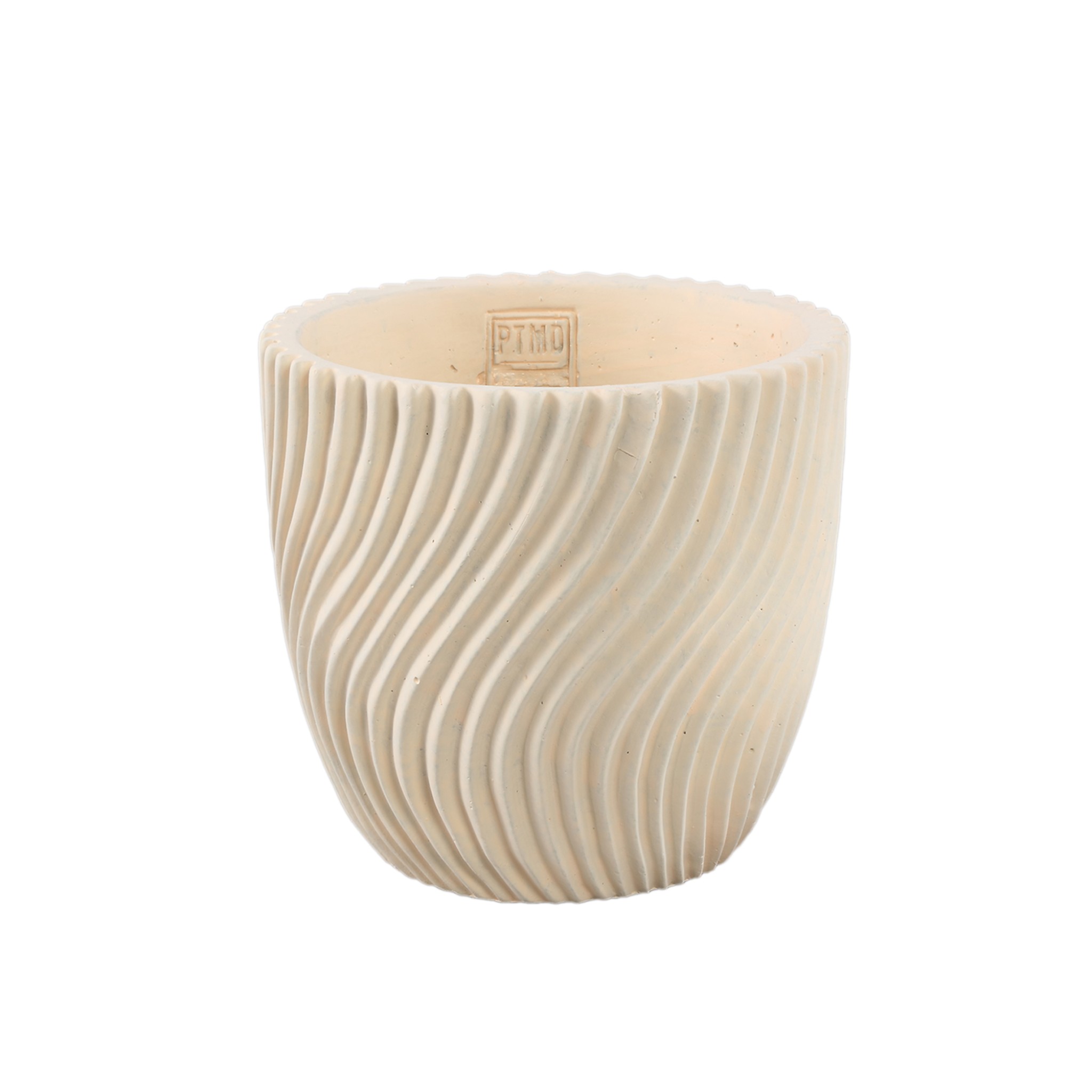 Lianna Cream Cement Pot | Ronde L Pot met Lijnen | 19×18 cm