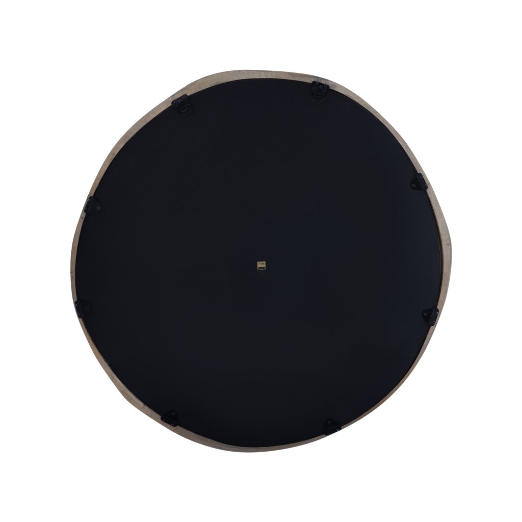 Stijlvolle grote ronde spiegel met irreguliere brass aluminium rand. Luxe en elegant design dat elke ruimte optisch vergroot. Afmetingen: 115x115x2 cm.
