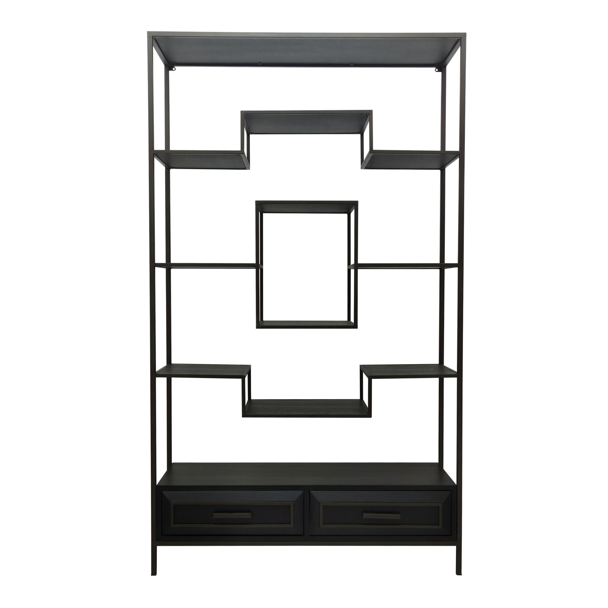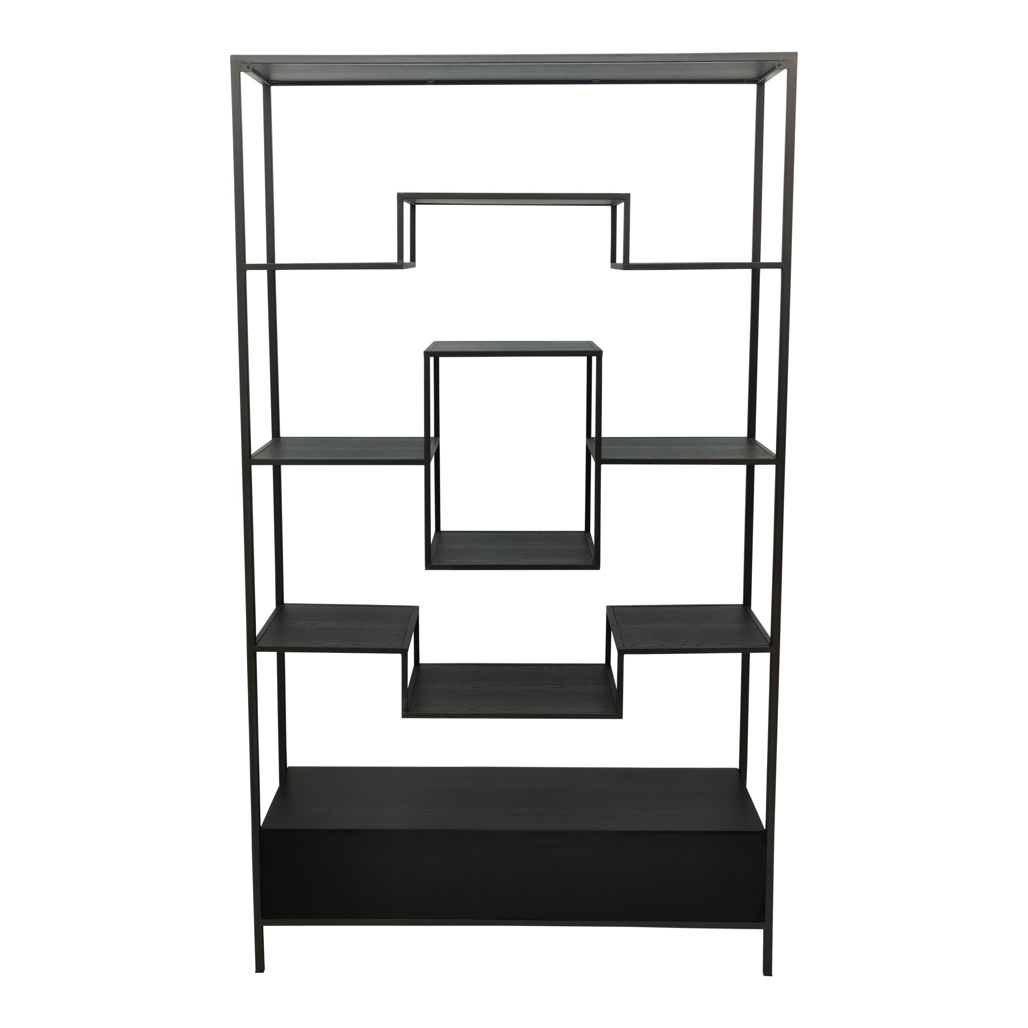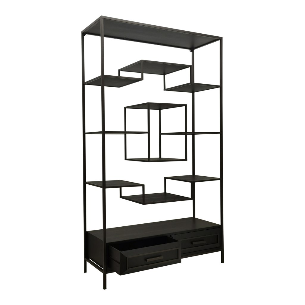 Lixly Black Wood Iron Frame Open Cabinet | Zwarte Houten Open Kast | Metalen Frame – 190 cm Hoog