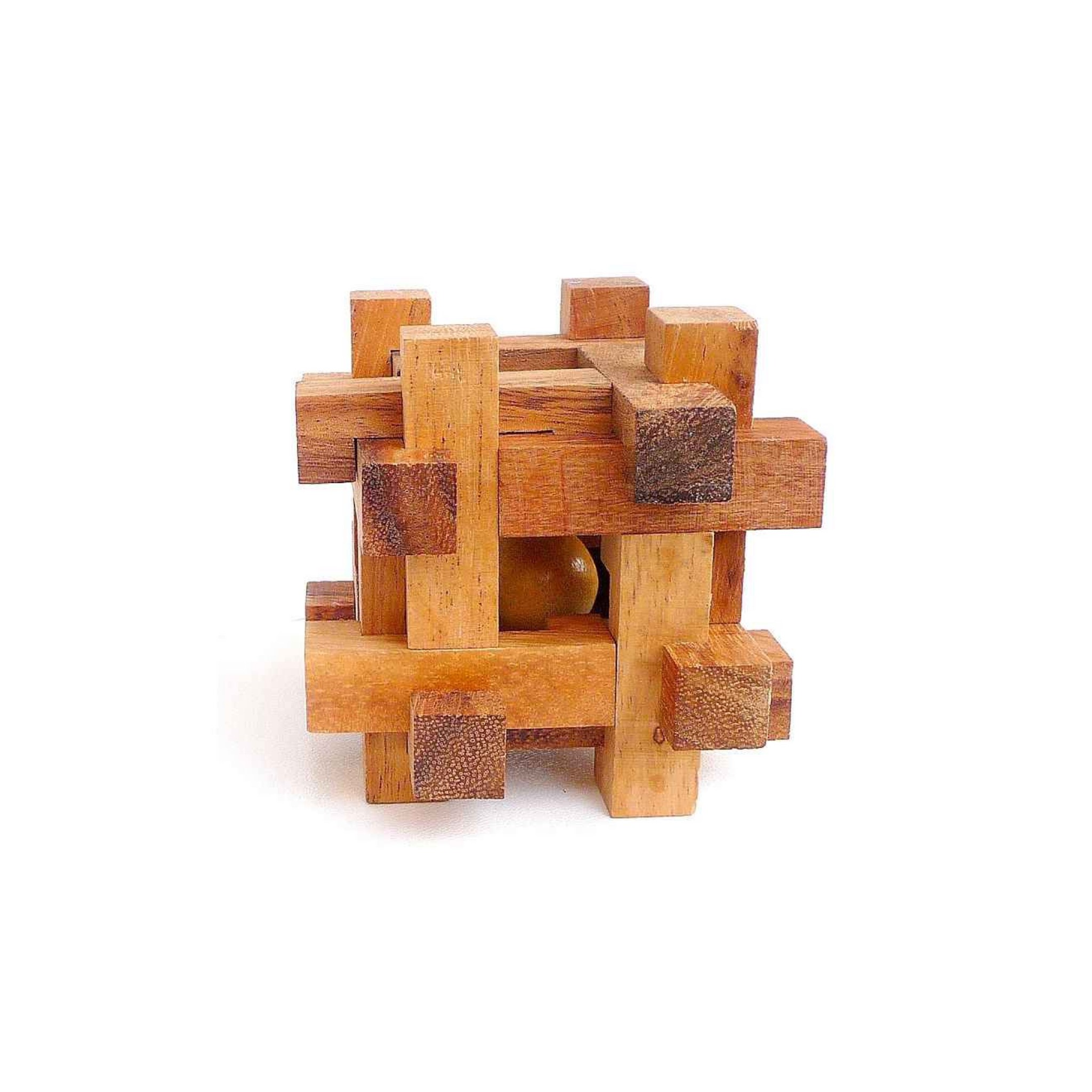 Ontgrendel de uitdaging van de Gabbia/Cage breinbreker van Logica Giochi. Deze houten puzzel bestaat uit 24 teakhouten stukjes en een kleine houten bal, die je op creatieve wijze moet samenvoegen om het spel te voltooien.